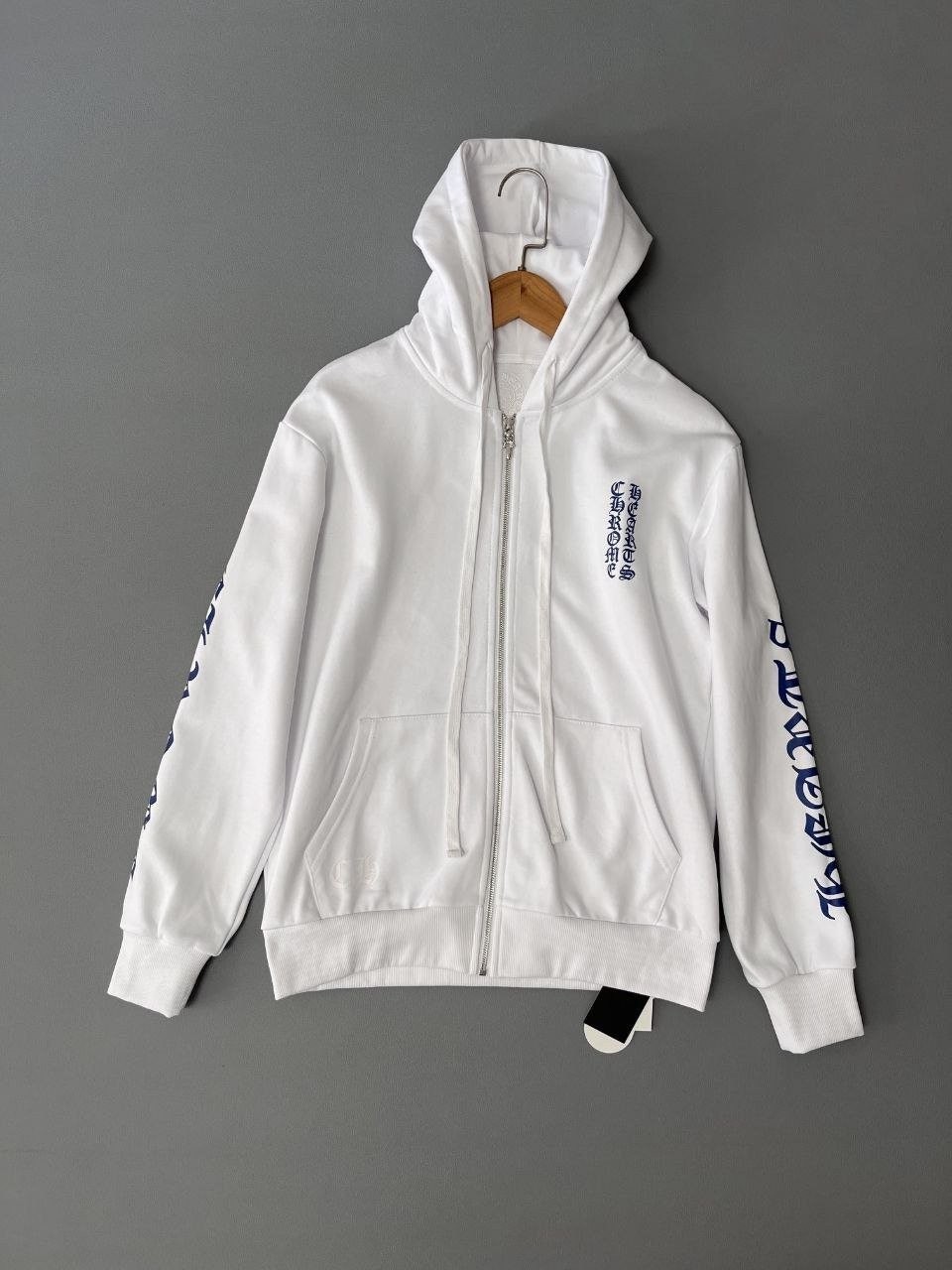 •쇼핑백이 포함된 고급 버전의 크* 고딕 프린트 집업 후디 스타일로, 남녀 모두 착용 가능한 디자인입니다. 유행을 좇지 않으면서도 개성이 뚜렷한 제품으로, 가격은 다소 있지만 품질이 좋아 안심하고 입을 수 있는 아이템입니다. 원단은 순면 루프(테리) 형태의 더블스트랜드·더블필(두 가닥 두겹) 원사로 짜여 중량감이 충분하고 손에 닿는 촉감은 부드럽고 포근합니다. 물세탁 후에도 원단이 딱딱해지지 않아 착용감이 매우 편안하며, 시보리(리브)는 같은 배합·동일 염색 배럴에서 처리한 480g급 고중량 원단을 사용해 탄탄함을 유지합니다.
