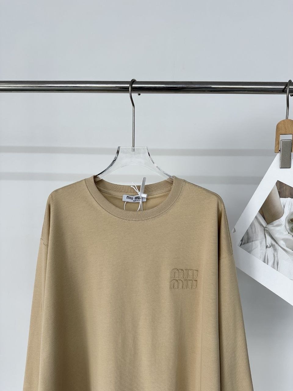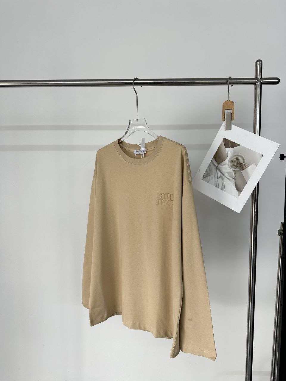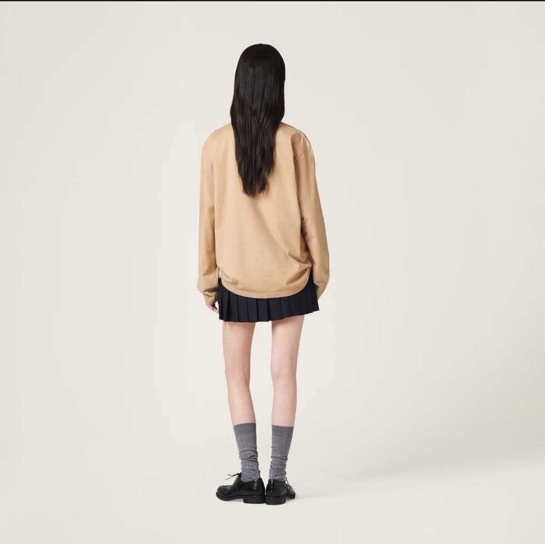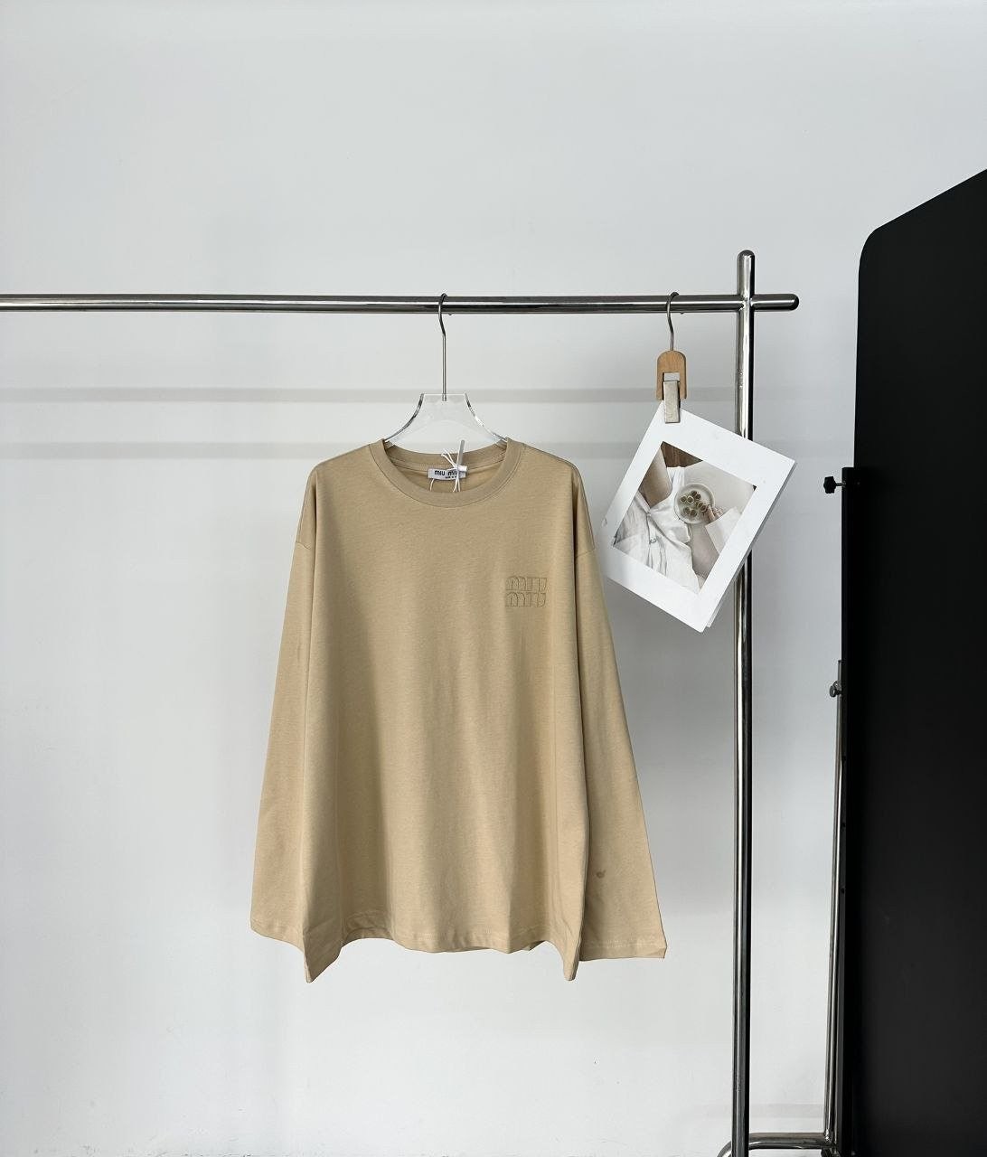 •Miu 신상 로고 패치 자수 로고 긴팔 티셔츠 입니다. 보기 드문 새로운 색상으로 고급스러움이 느껴지는 제품입니다. 어떤 스타일로 입어도 잘 어울리는 완벽한 롱슬리브로 가슴 앞부분에 패치 자수가 더해져 입체적이고 고급스러운 느낌을 줍니다. 순면 소재로 편안한 착용감을 제공하며, 사계절 내내 입을 수 있습니다. 루즈핏으로 남녀 모두 착용할 수 있으며 심플하고 세련된 디자인에 멋스러움이 더해진 아이템으로 꼭 소장해야 할 확실히 활용도 높은 옷입니다.