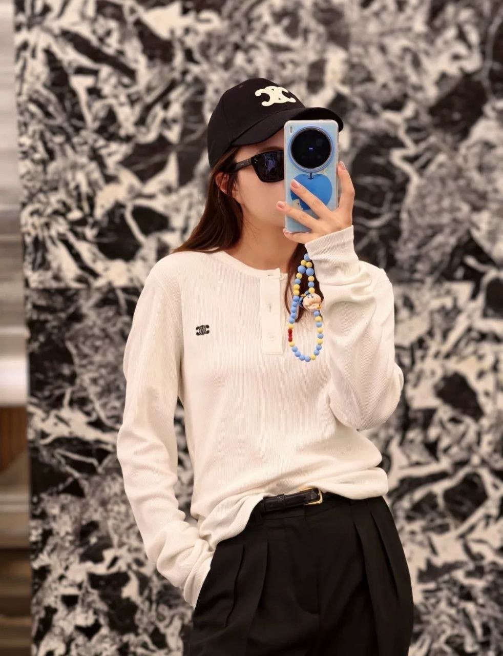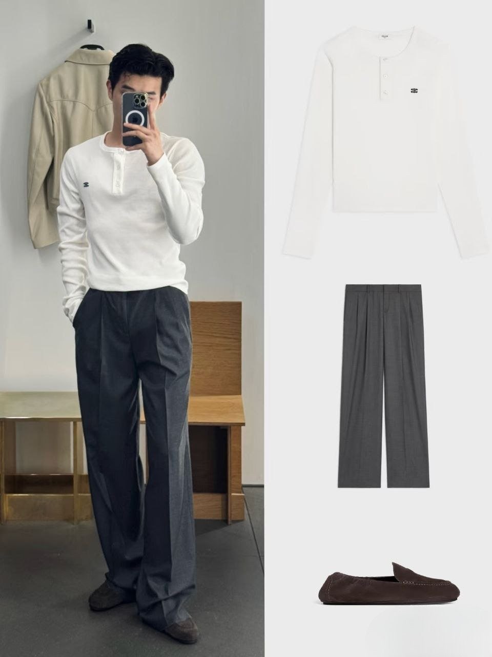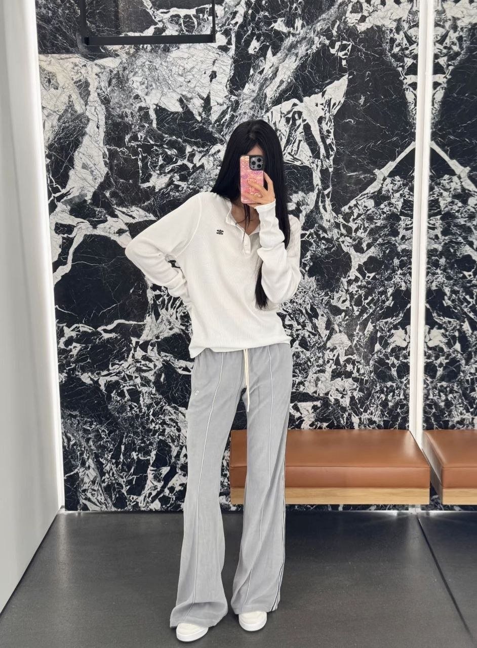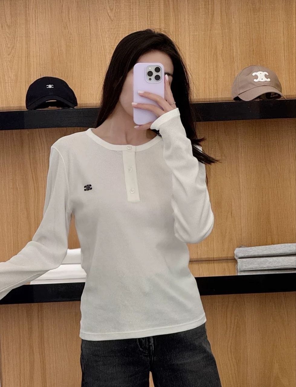 •파리 런웨이 착용 아이템, CELI** 신상 3버튼 하프 오픈 헨리넥 TRIOMPHE 자수 롱슬리브 티셔츠입니다. 2×2 립 코튼 소재로 단색임에도 단조롭지 않고, 살짝 신축성이 있어 착용 시 실루엣과 질감이 매우 뛰어납니다. 라운드넥에 3버튼 오픈, 클래식 헨리넥 디자인으로 소매와 밑단은 스트레이트 라인이라 스포티함과 빈티지 무드를 동시에 담았습니다. 가슴에는 상징적인 트리옴프(개선문 체인) 모티프의 미니 자수가 정교하고 볼륨감 있게 더해져 포인트가 되며, 높은 인지도를 담아냅니다. 유니섹스 디자인으로 다양한 스타일링에 쉽게 어울립니다. 고중량 워싱 2×2 립 원단을 사용해 ZP급 퀄리티를 구현했습니다.