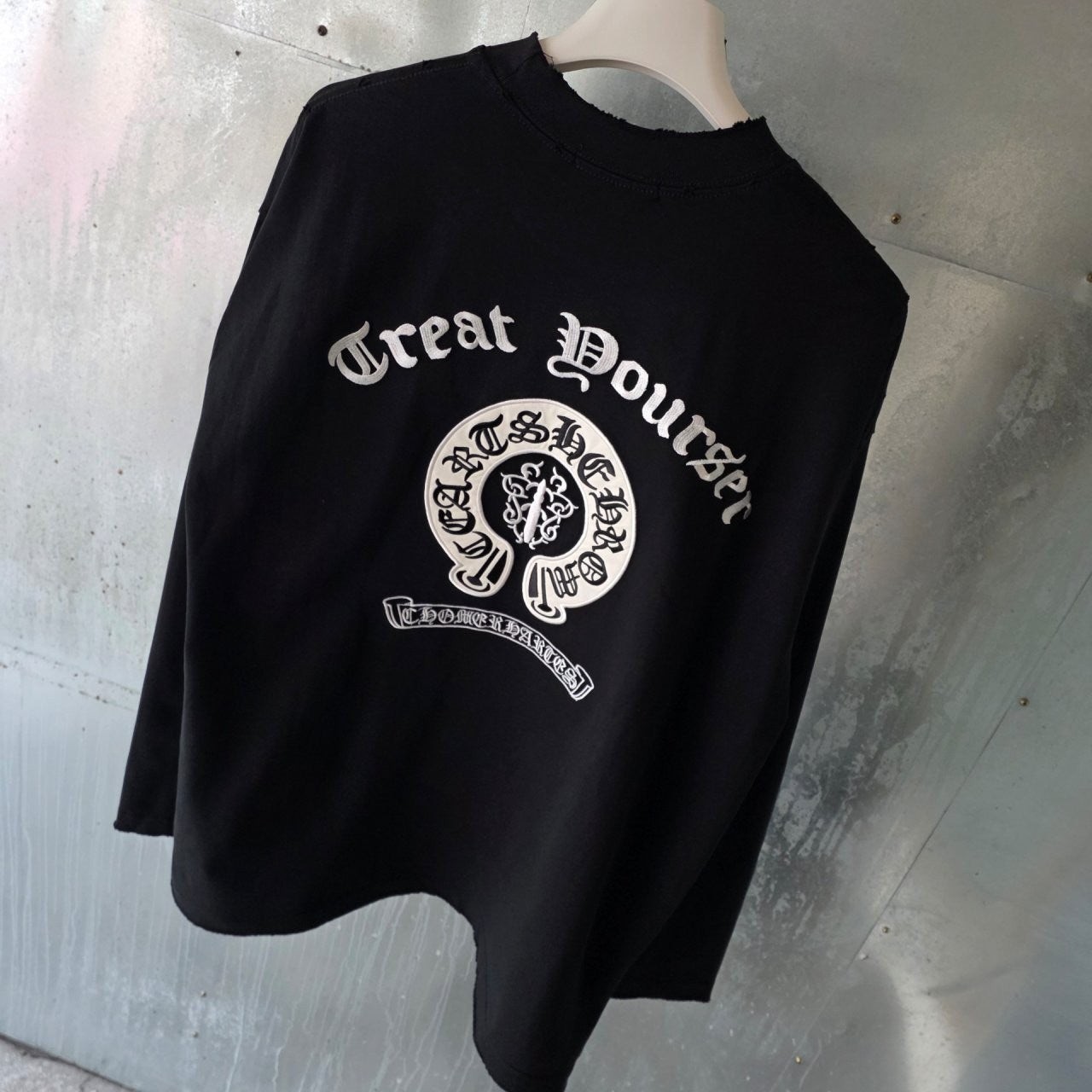 본 제품은 "크* 플래그 대거 오버 롱슬리브 티셔츠로써 정규품 동일원단을 사용해 크롬전문제작 공장에 오더를넣어 제작한 완벽한 상품입니다. 고급스러운 무드와 핏으로 편안하게 입으실 수 있으며 국내에서 흉내조차 내기 힘든 디테일이며 퀄리티 자부합니다.