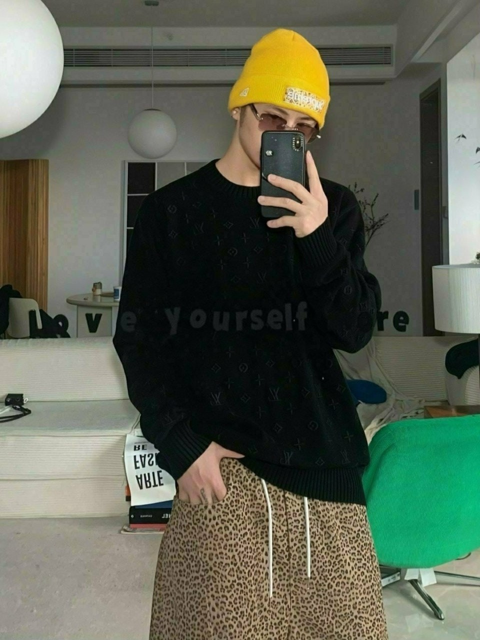 루* 전판 자수로고 니트