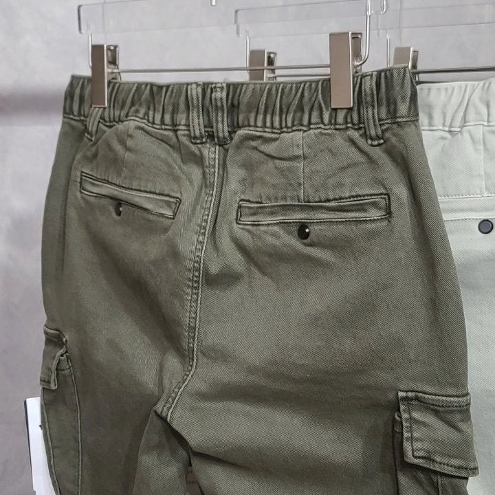 활동성 좋은 면 스판 소재에 퀄리티 높은 피그먼트메탈워싱공정을 거친 빈티지 스타일의 밴딩카고팬츠입니다