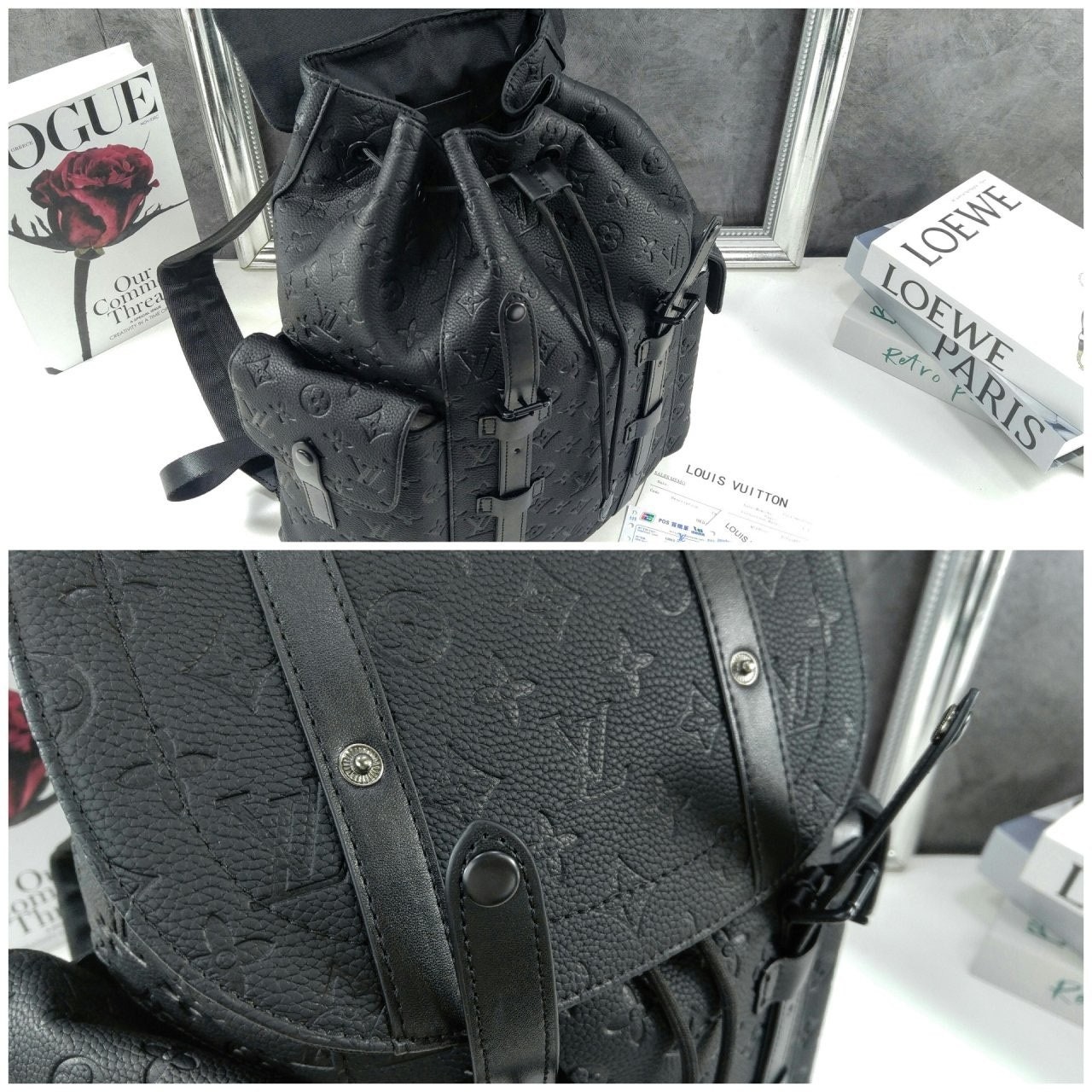 외부 옆면에는 두 개의 포켓을, 내부에는 다수의 기능적인 포켓을 갖춘 미디엄 사이즈의 크리스토퍼 MM 백팩. 모노그램 모티프를 양각으로 새긴 토뤼옹 가죽 소재. 블랙 색상의 가죽 스트랩. 매트 블랙 색상의 하드웨어. 드로스트링 및 프레스 스터드 잠금장치로 소지품을 안전하게 보관할 수 있는 아이템.