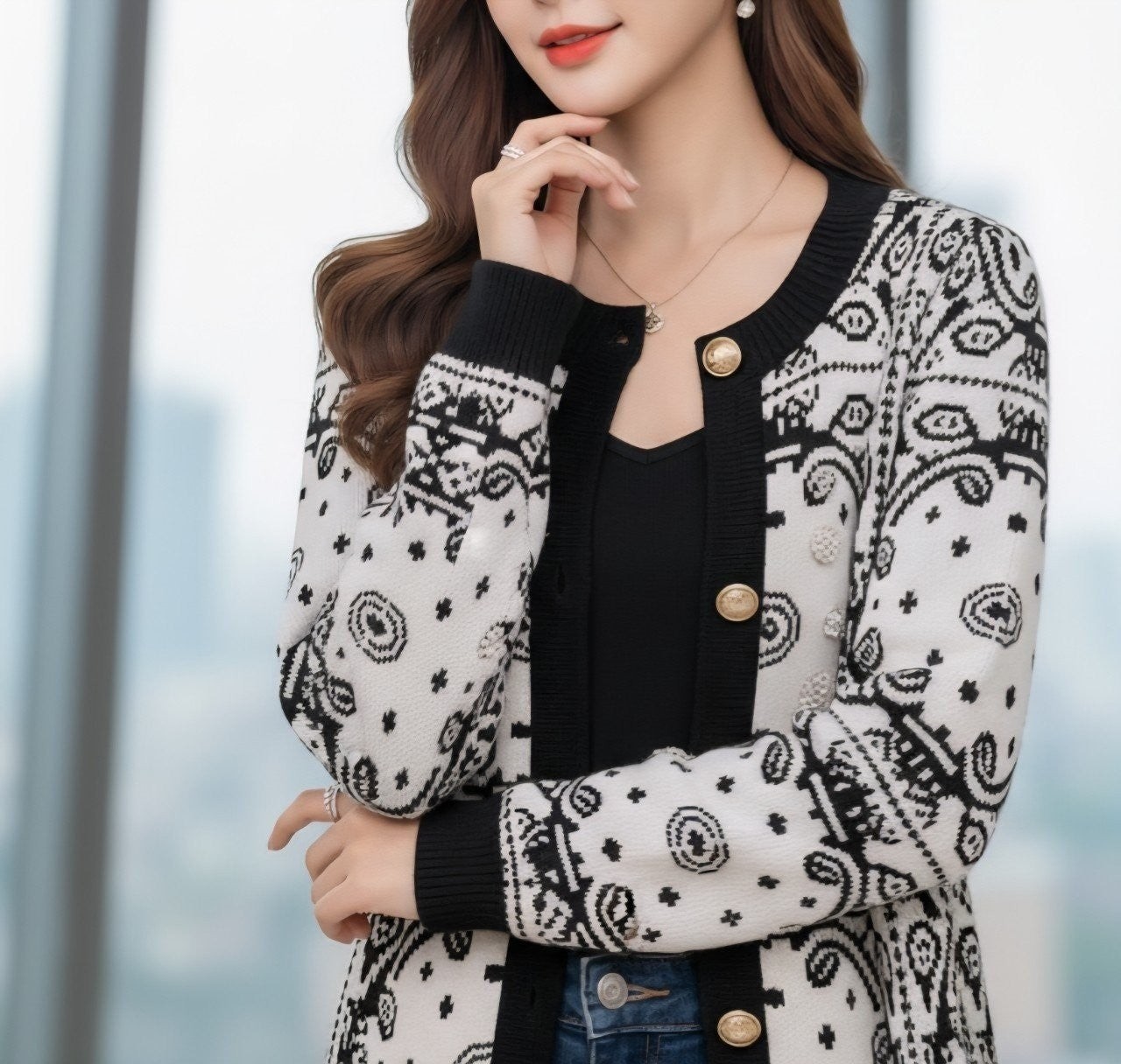구* 진주큐빅 문양 니트 가디건 (7097)