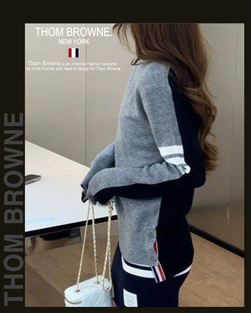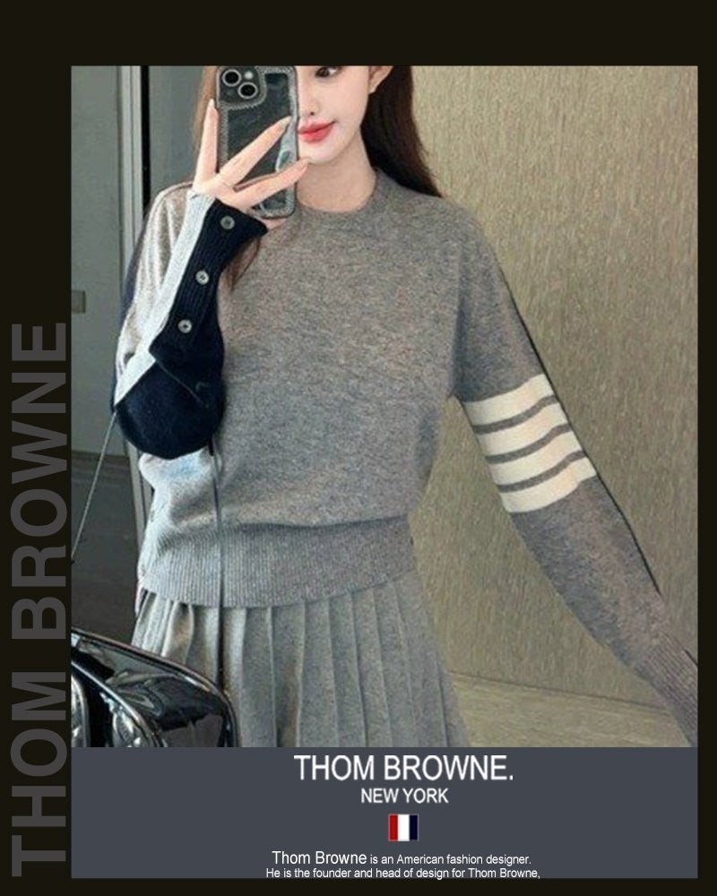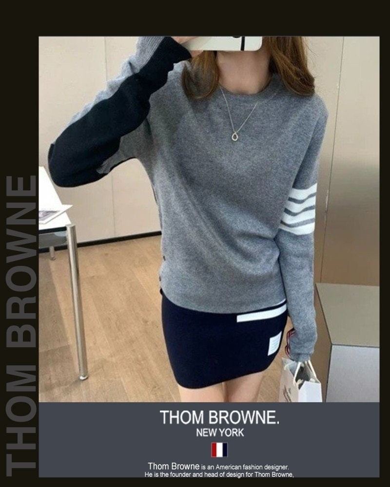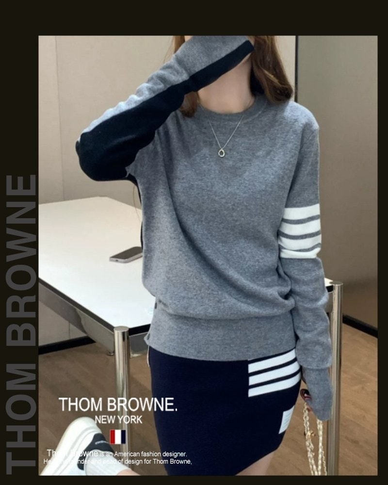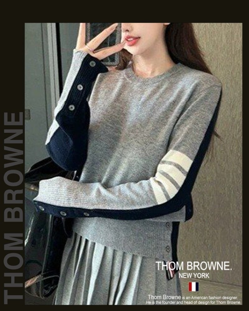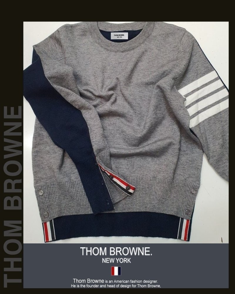 톰* 그레이 앤 네이비 라운드 니트 (8371)