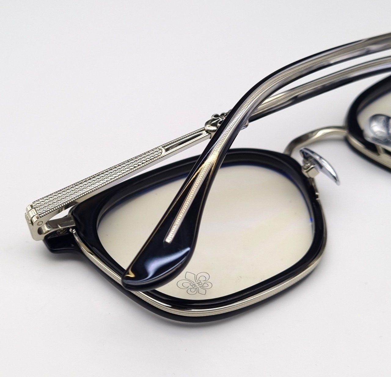✔아세테이트와 티타늄 실버가 결합된 콤비네이션 안경테