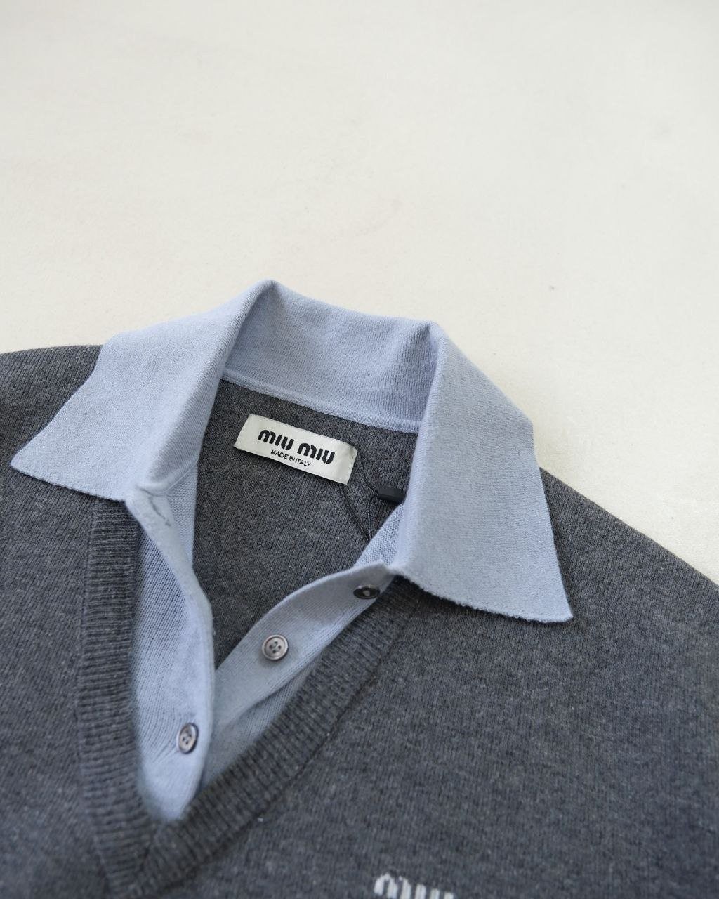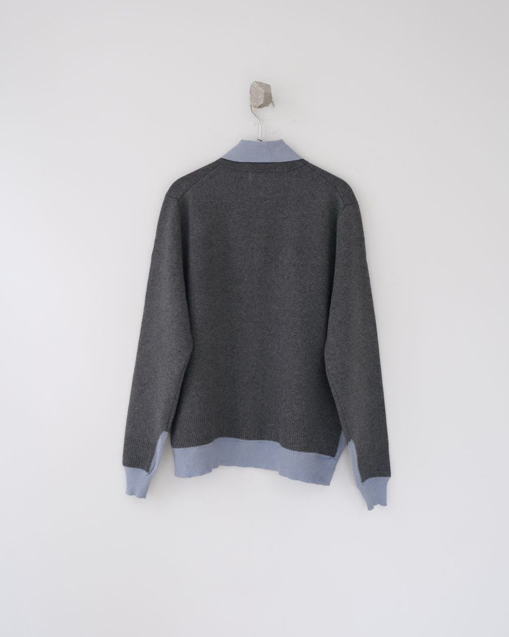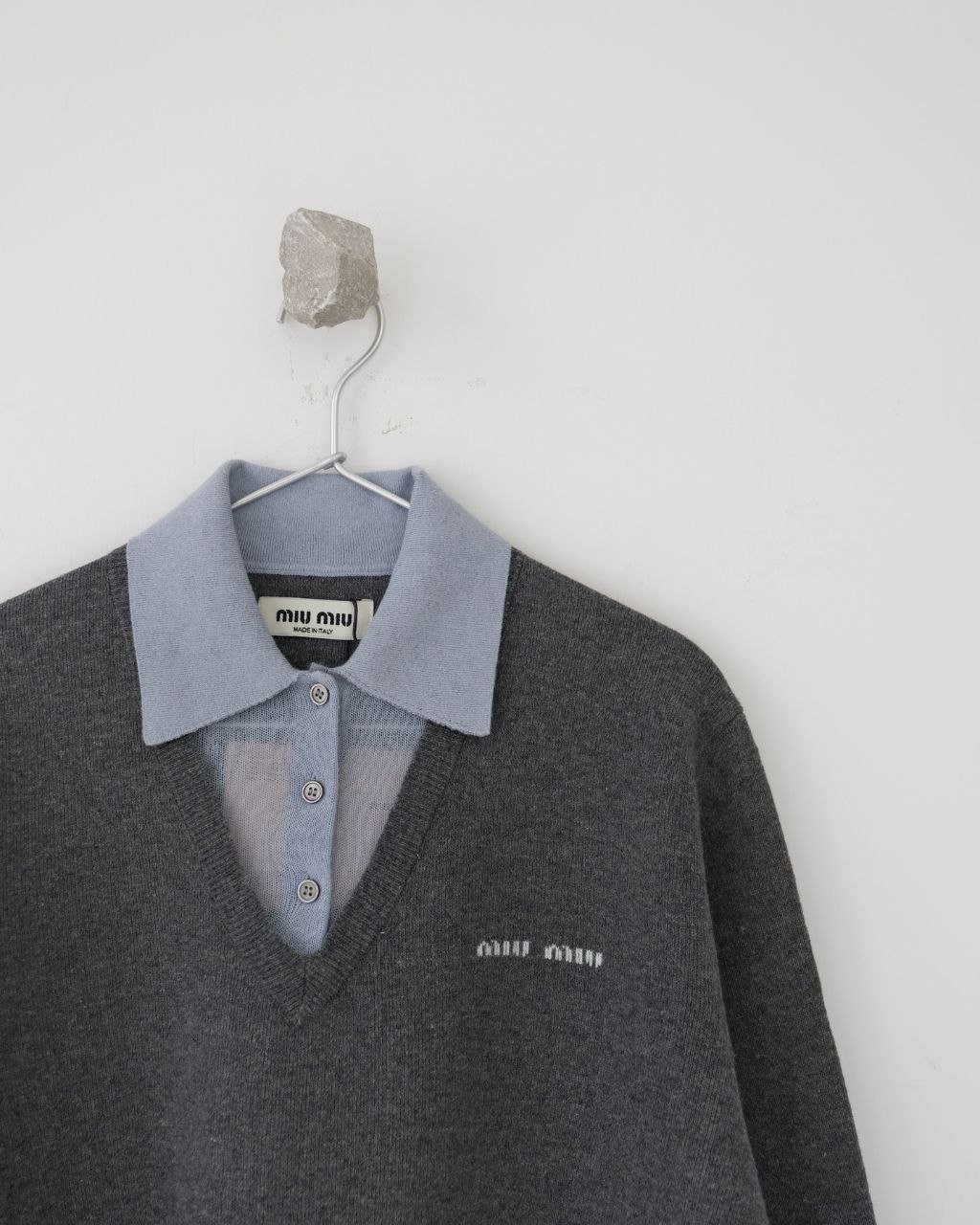 •Mi* Mi*(미***) FW 시즌의 울 혼방 모란디 톤 폴* 카라 배색 스타일의 레이어드 효과 롱슬리브 니트로, 남녀 공용으로 착용 가능한 제품입니다. 오리지널과 동일한 울 혼방 원사를 사용했으며, 세 가지 소재를 조합해 피부에 닿는 감이 부드러운 텐셀, 엄선된 울, 광택이 도는 실크를 더해 원단의 드레이프감과 고급스러움을 살렸습니다. 울 혼방 원사 구성은 울 35%, 면 45%, 나일론 20%로, 원단의 흐르는 느낌과 착용감을 높이기 위해 배합한 비율입니다.