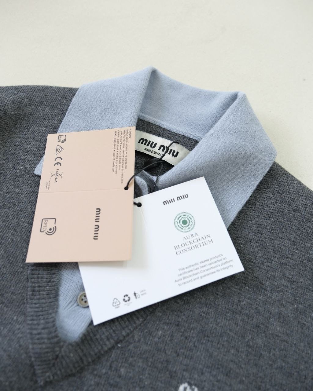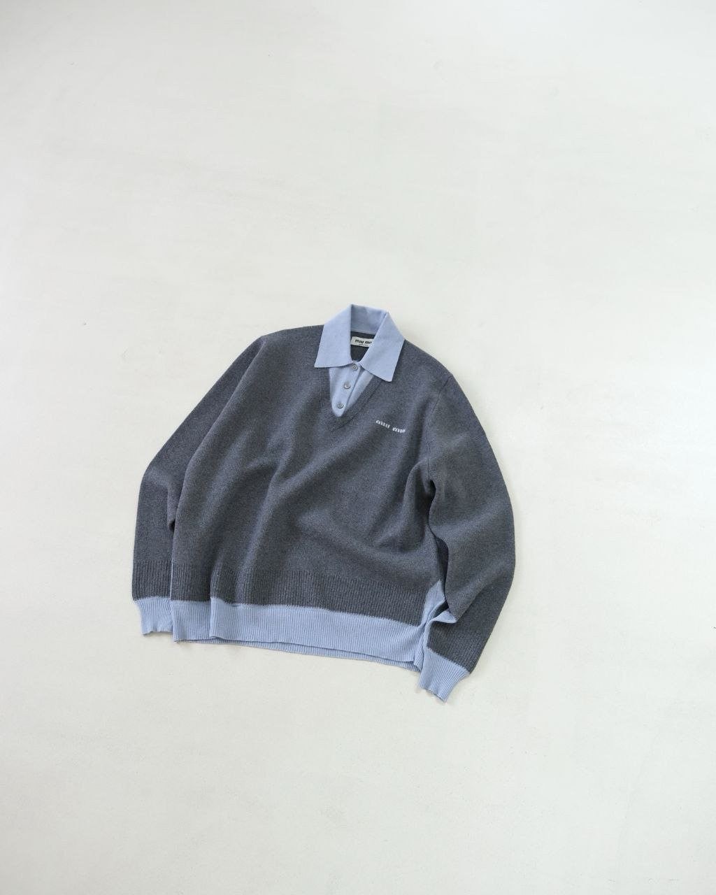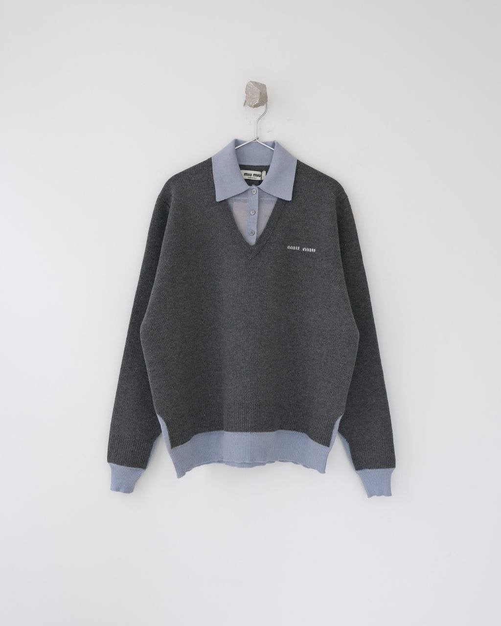 •Mi* Mi*(미***) FW 시즌의 울 혼방 모란디 톤 폴* 카라 배색 스타일의 레이어드 효과 롱슬리브 니트로, 남녀 공용으로 착용 가능한 제품입니다. 오리지널과 동일한 울 혼방 원사를 사용했으며, 세 가지 소재를 조합해 피부에 닿는 감이 부드러운 텐셀, 엄선된 울, 광택이 도는 실크를 더해 원단의 드레이프감과 고급스러움을 살렸습니다. 울 혼방 원사 구성은 울 35%, 면 45%, 나일론 20%로, 원단의 흐르는 느낌과 착용감을 높이기 위해 배합한 비율입니다.