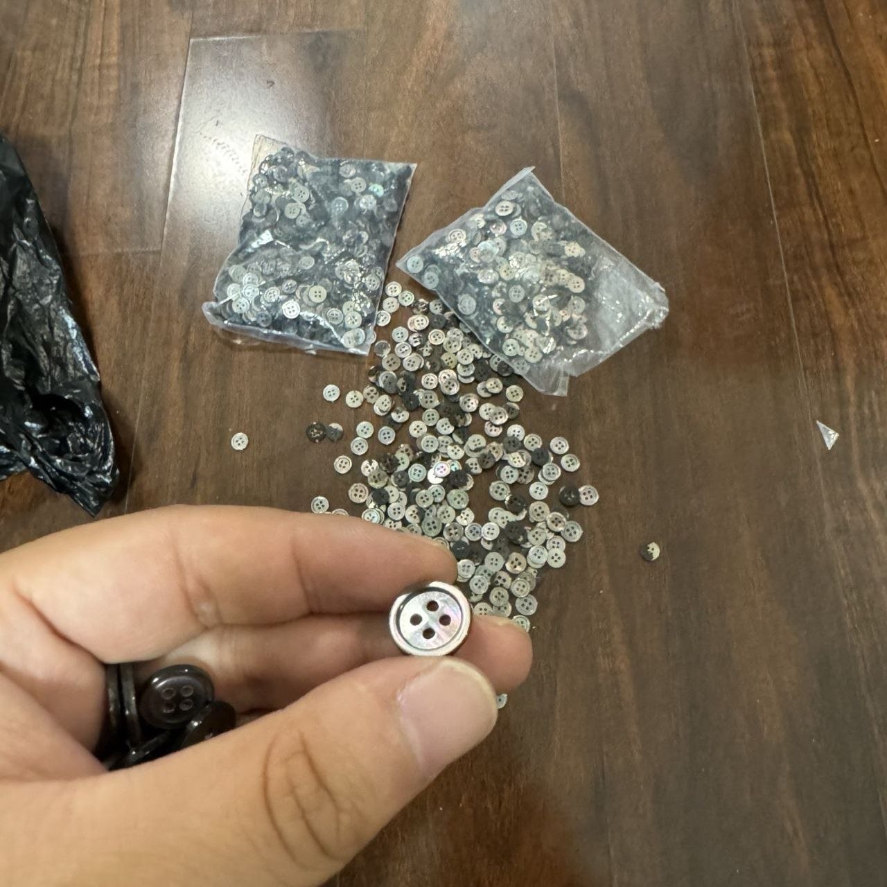 •버튼은 오리지널을 분해해 본떠 몰드를 제작한 뒤 주문 제작한 자개 단추를 사용해 크기와 소재감을 최대한 오리지널에 가깝게 복원했습니다. 세탁 라벨·사이즈 택 등은 오리지널과 동일한 규격으로 제작해 부착했습니다.