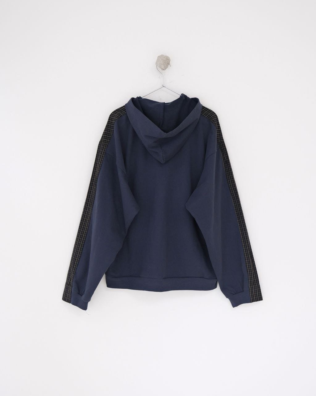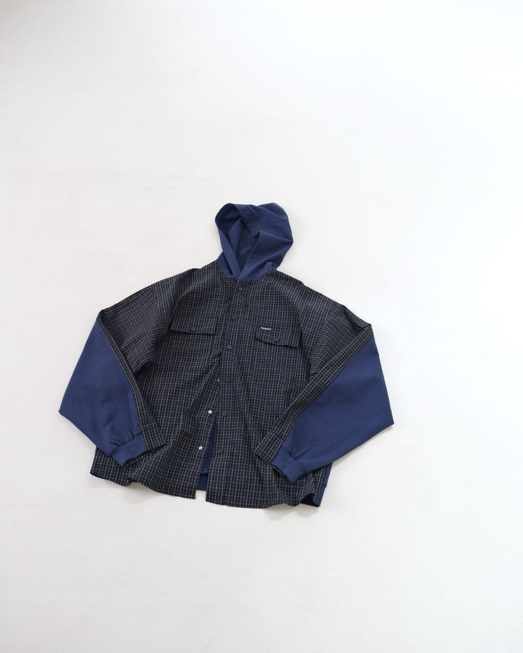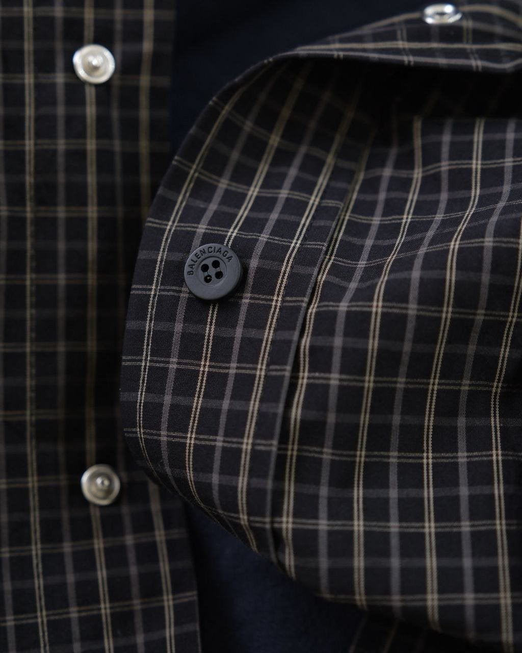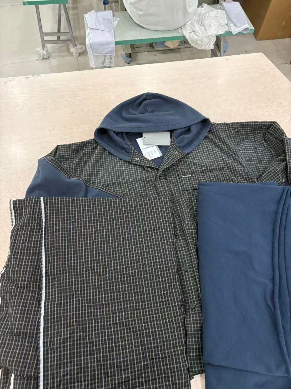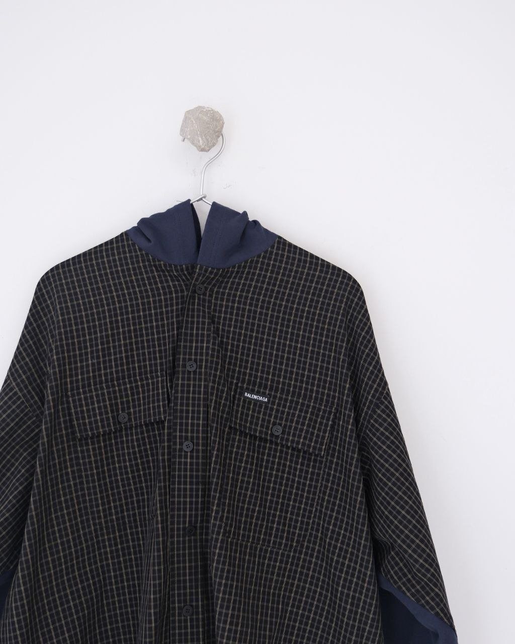 •Balencia**(발****) 25FW 체크 포켓 셔츠 재킷으로, 여러 연예인과 셀럽 들이 착용한 스타일입니다. 오리지널을 바탕으로 개발했으며, 면으로 직조한 컬러 원단을 패널별로 짜 맞춘 뒤 니트 공정을 더한 스페셜 기법을 적용해 위치별 재단과 봉제가 정확하게 맞아떨어지도록 제작했습니다. 원단 소모가 크고 공정이 많은 편이며, 여덟 똑딱이 버튼 금속 장식과 YB(원본) 사양을 일치시켰습니다. 완성 후에는 워싱과 효소 처리를 통해 빈티지한 느낌을 살렸고, 패턴과 실루엣은 오리지널 버전과 동일해 착용 시 자체적으로 스트릿한 무드를 연출합니다. 전체적으로 표준적인 넉넉한 루즈핏입니다.