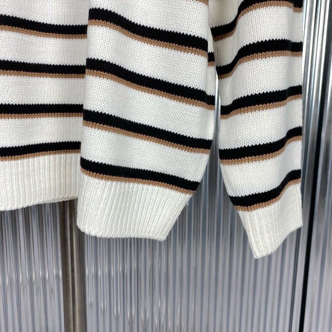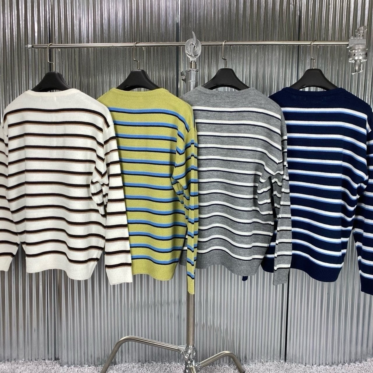 헨리넥 니트디자인에 깔끔한 스트라이프 패턴으로 보다 트렌디한 느낌으로 코디하기쉽고 고급스판사를 넣고 편직하여 여러번 착용시에도 변형되지 않는 제품
