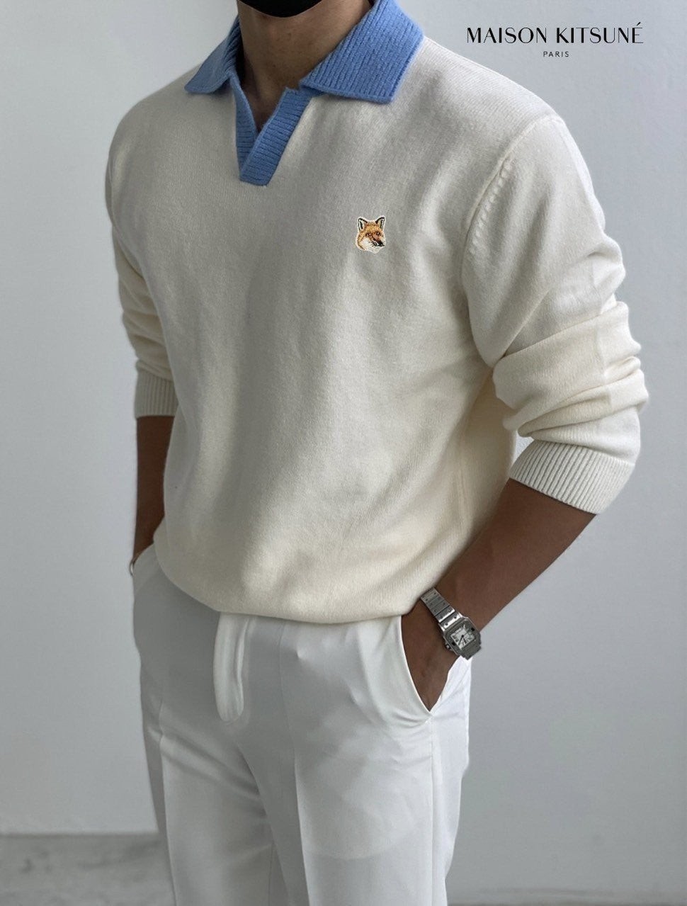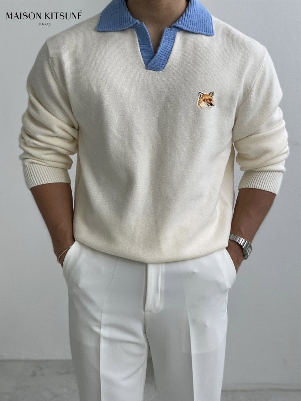 부드러운 촉감이 매력적인 아크릴 원사를 사용하였으며 가볍고 적당한 두께감과 잘 짜여진 니트짜임으로 높은 내구성까지 겸비한 배색라인카라니트 입니다.
