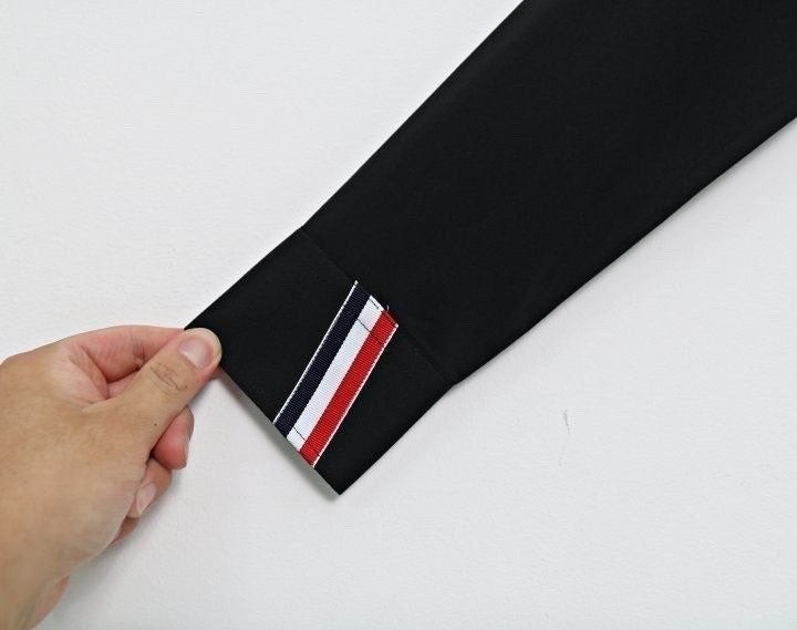 톰*사 만의 트레이드마크 삼선을 소매와 넥라인에 이어줘 고급스러운 느낌을 연출합니다.