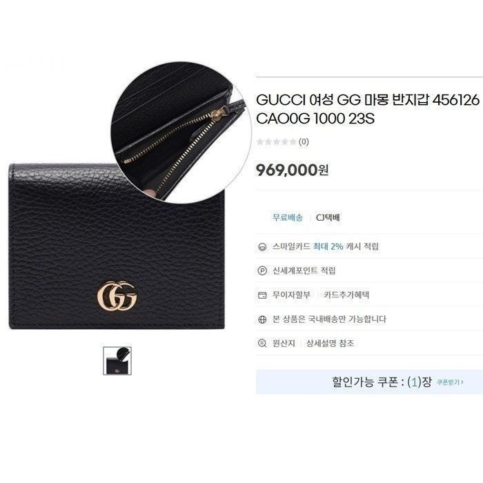 • 구* GG 마몬트 레더 카드 반지갑 544