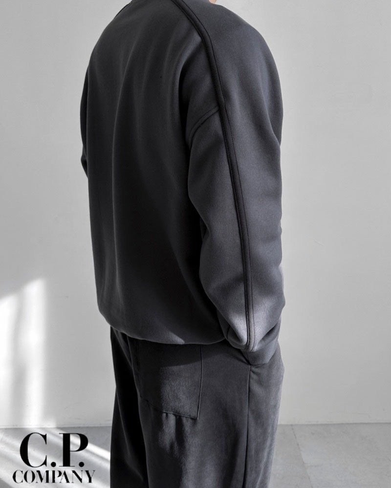 등 어깨 부분에서 소매까지 이어지는 트랙라인 디테일이 있는 맨투맨