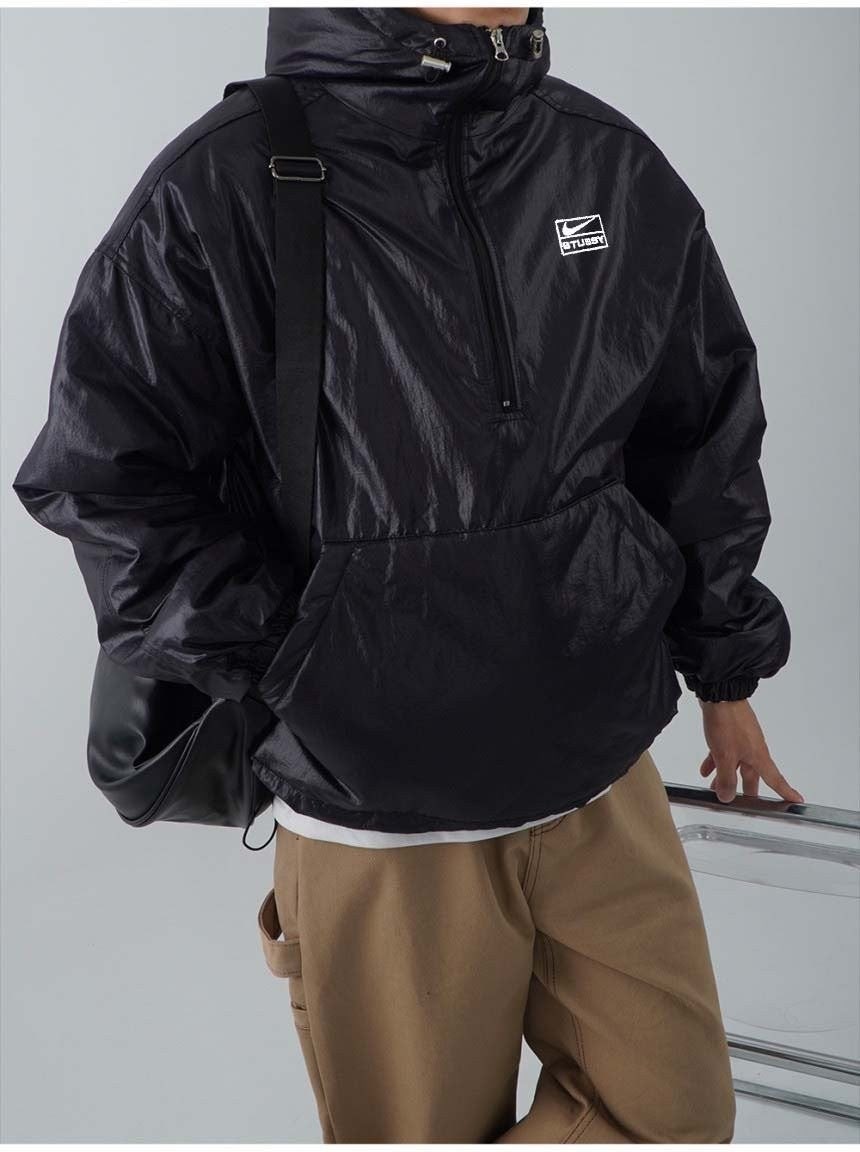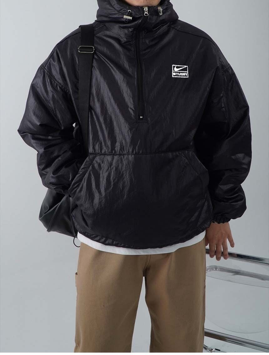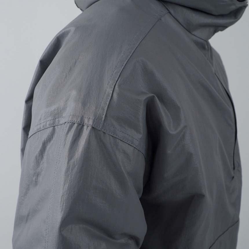 100% 나일론 소재로 글로시한 재질로 제작되어 유니크한 무드의 아노락 패딩입니다. 넥라인에 지퍼 디테일로 하이넥, 카라넥 등 여러 연출이 가능하며 후드, 밑단에 스트링과 3온스 누빔으로 겨울철 따듯하게 착용가능합니다.