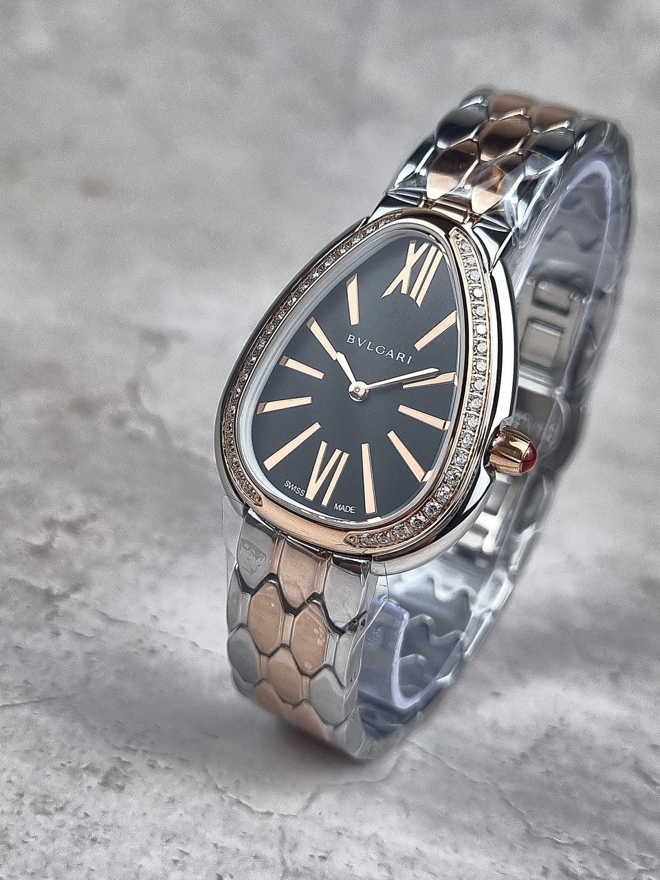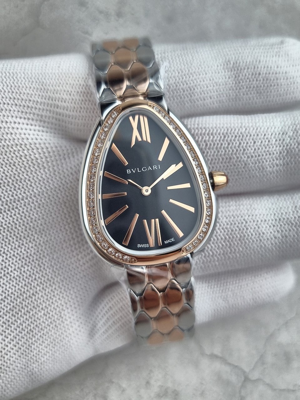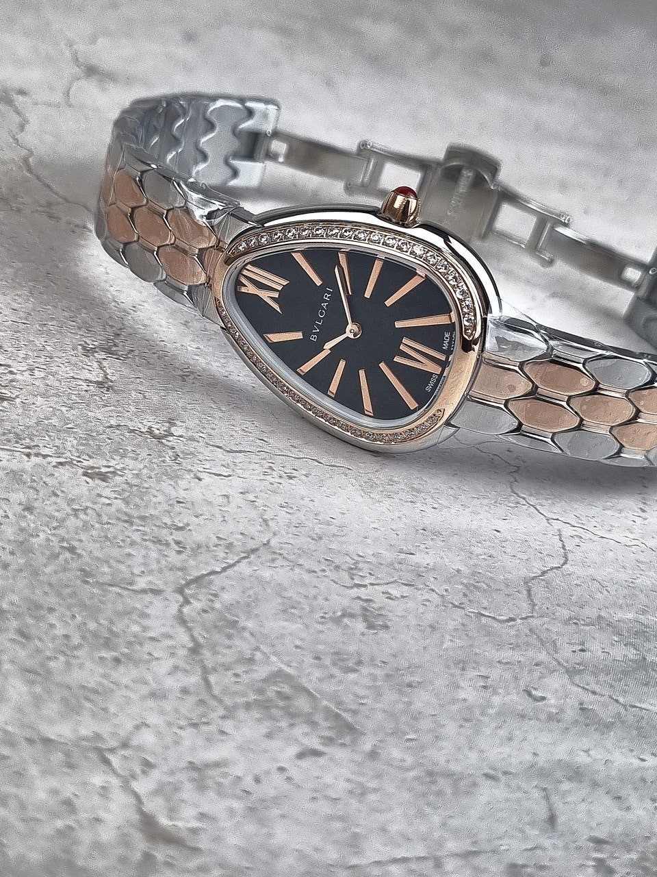 이번에 소개해드릴 시계는 불** 세르펜티 세두토리 워치 블랙다이얼 콤비 다이아 모델입니다.