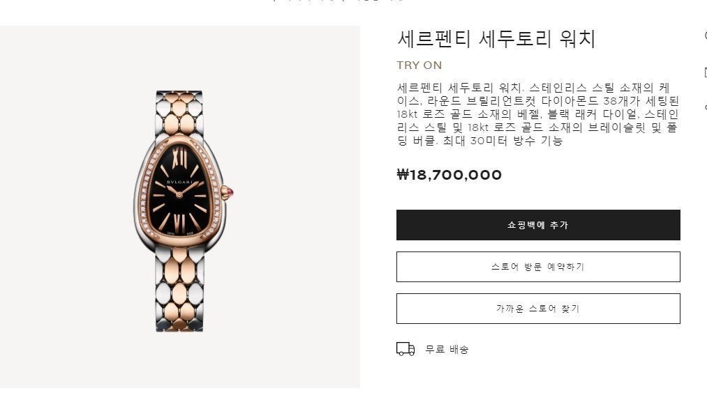 너무나도 유명한 모델중 하나입니다. 여자연예인들의 베스트 워치 첫 번째라 하면 당연히 불** 세르펜티 모델입니다. 이번블랙 다이아모델은 아이브 장원영님이 착용해주셔서 유명한 모델입니다. 말로 설명이 필요없는 시계중 하나인만큼 어렵게 입고시켰습니다.