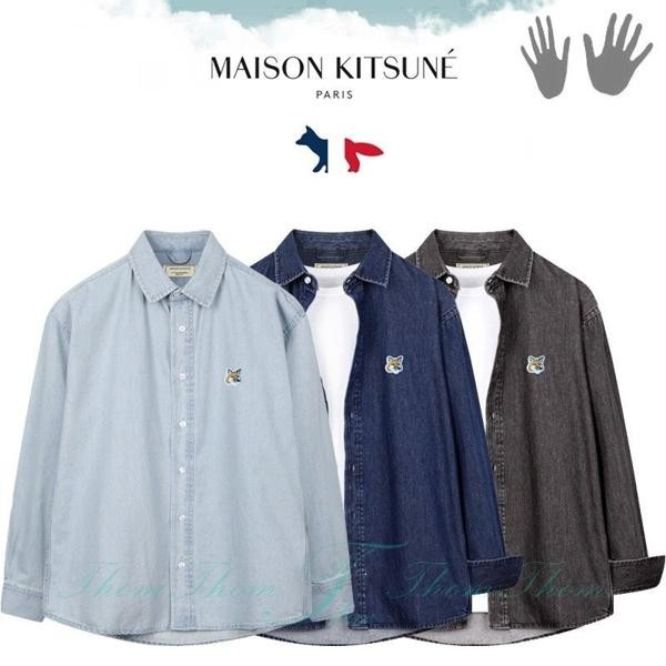 메* 키츠네 오버핏 데님 셔츠