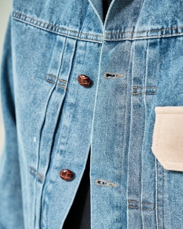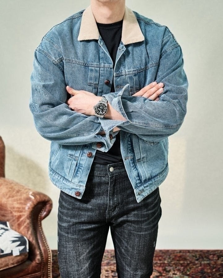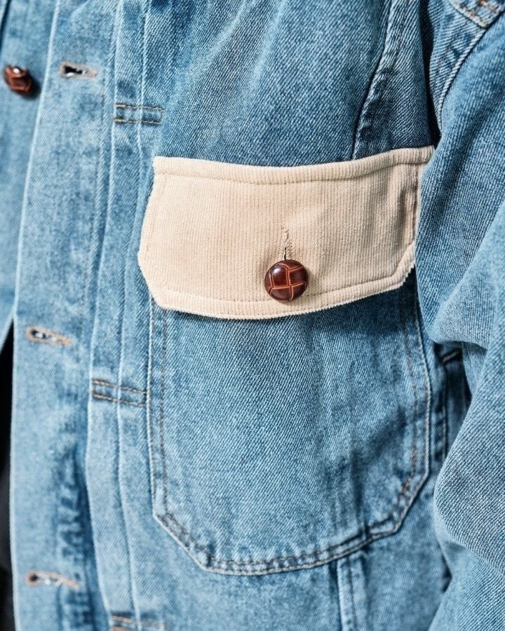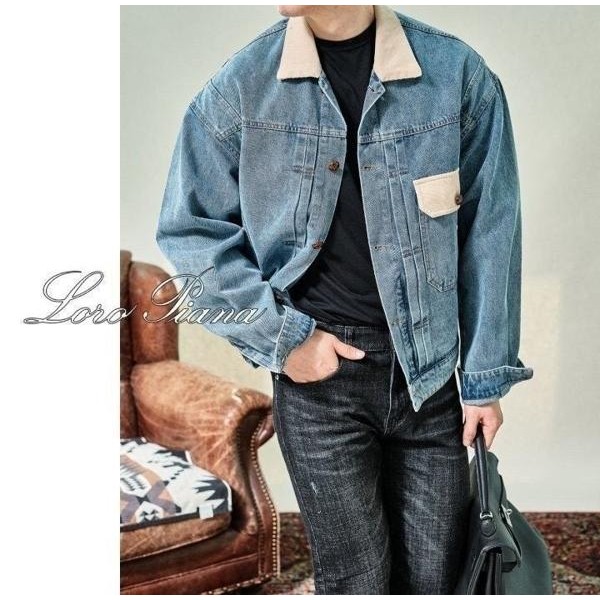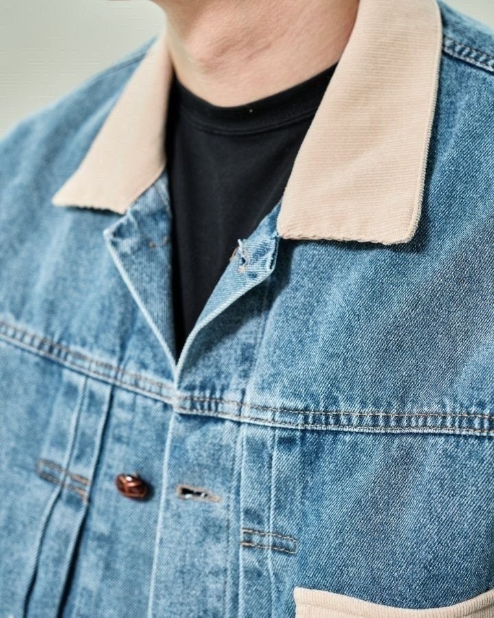 코듀로이 카라가 배색된 캐주얼한 데님점퍼입니다.