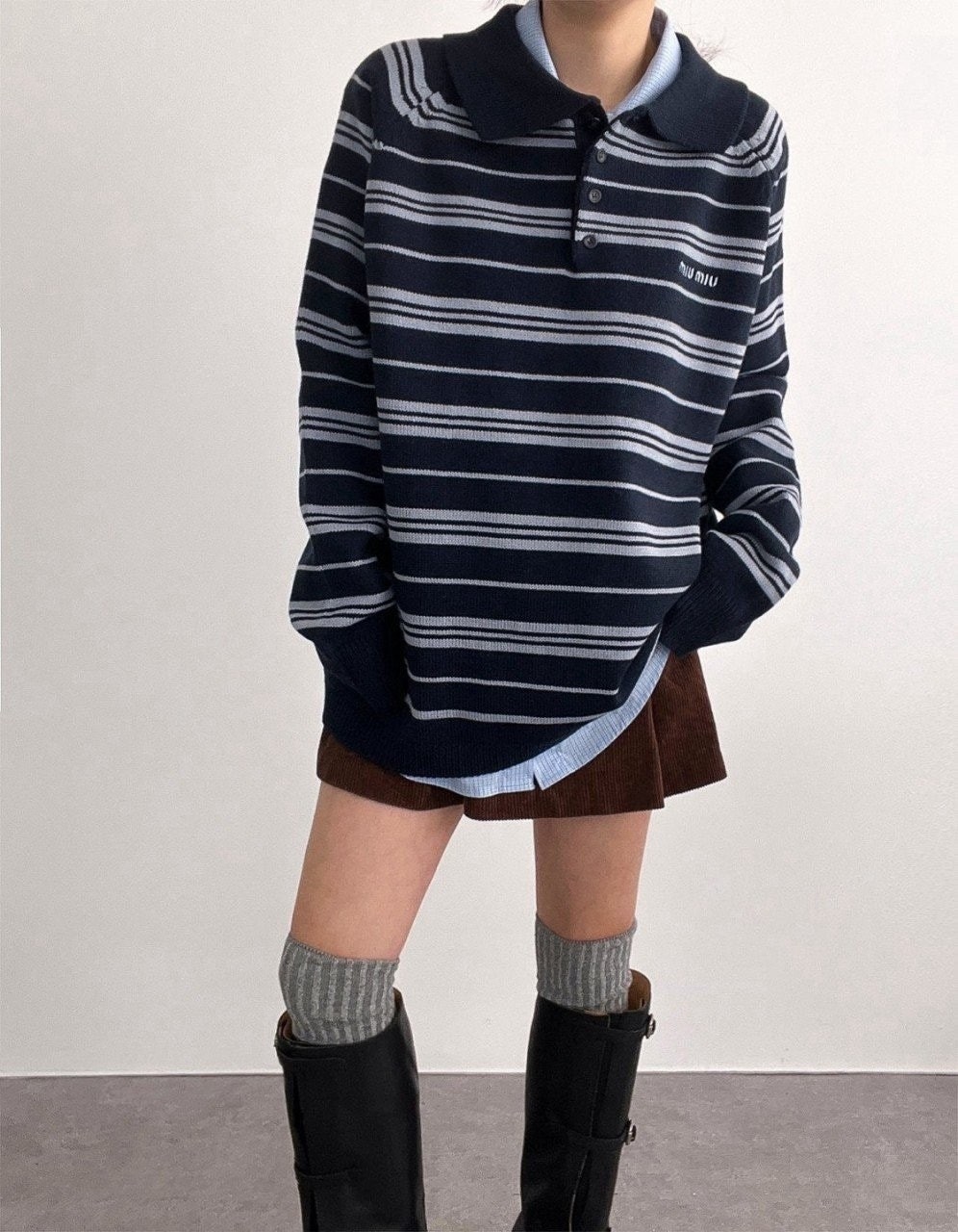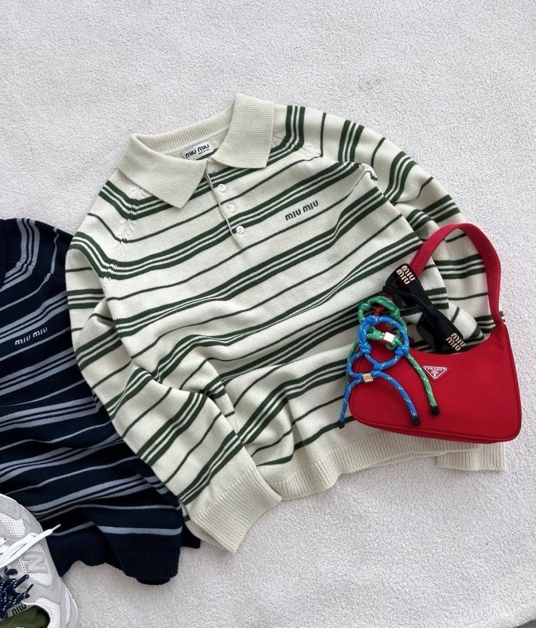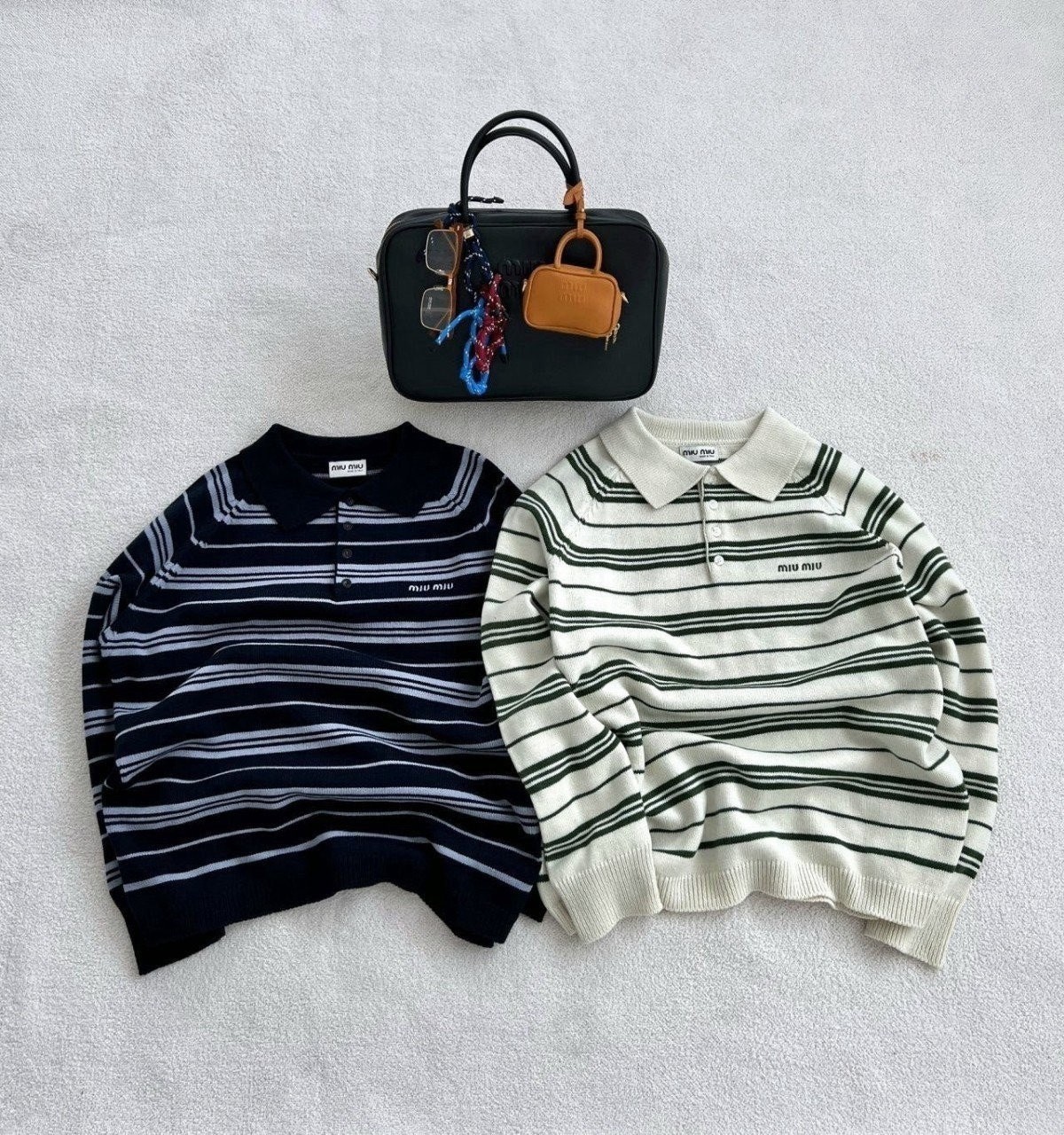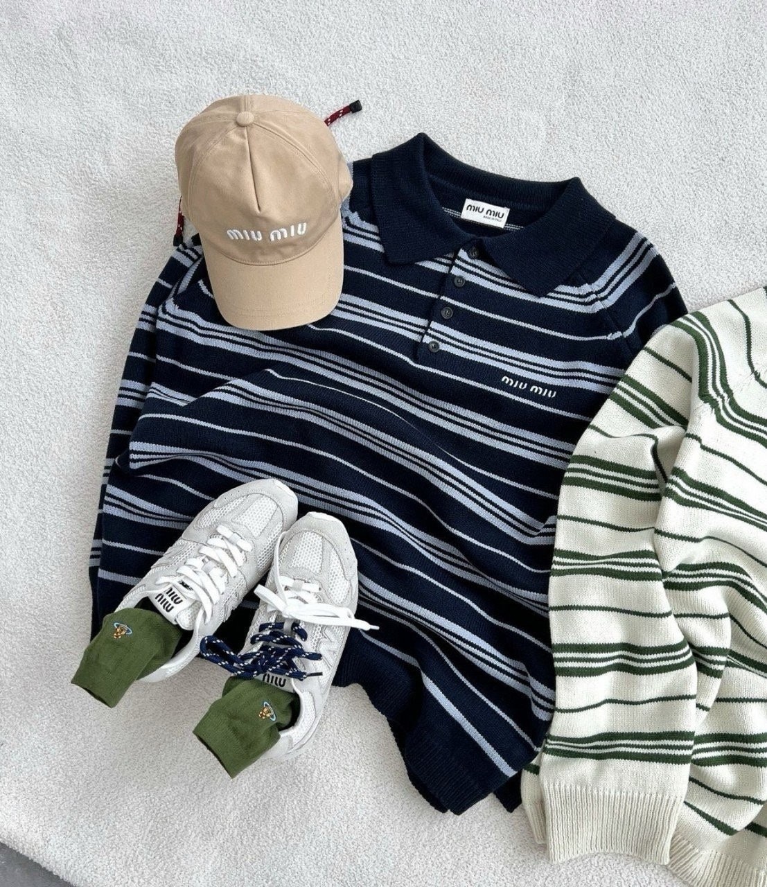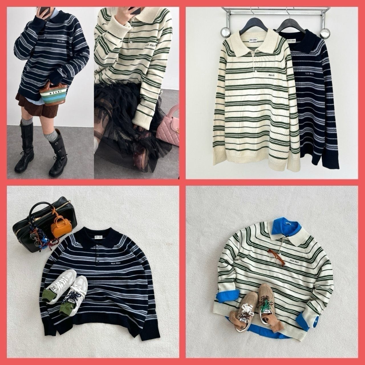 요번 미우의 프레피 무드는 클래식한 스타일에, 현대적인 감각을 더해서 유니크한 미우만의 트렌디함을 보여주는데요, 지난 시즌 아가일 체크 패턴에 이어 쏟아지는 스트라이프 패턴들이 시리즈로 줄지어 나오고 있는 와중에 스트라이프 카라 니트 요즘 메가 트렌드는 미니멀리즘, 부내철철 고급미 잔뜩, 상류층 자제들이 입는건가봉가와 바로 그 미우만의 프레피감성이 제대로 만난 제품