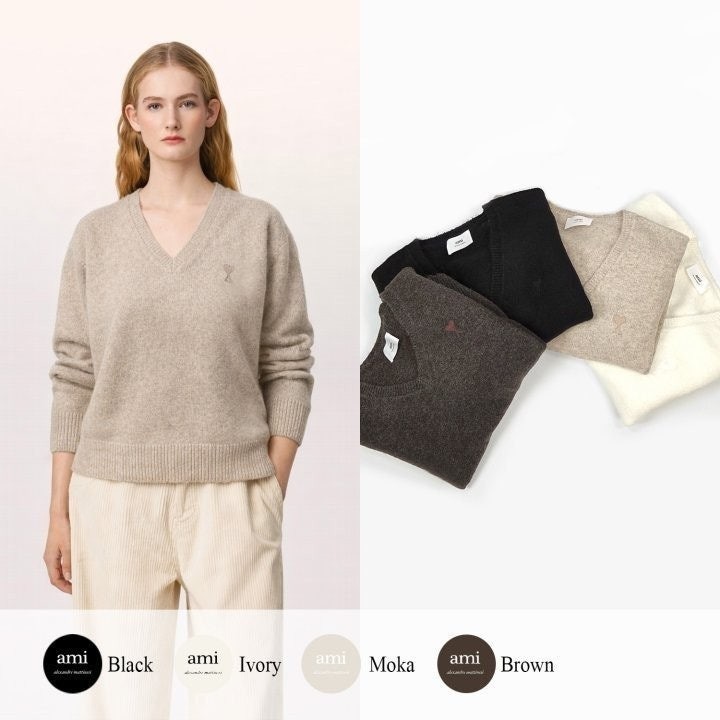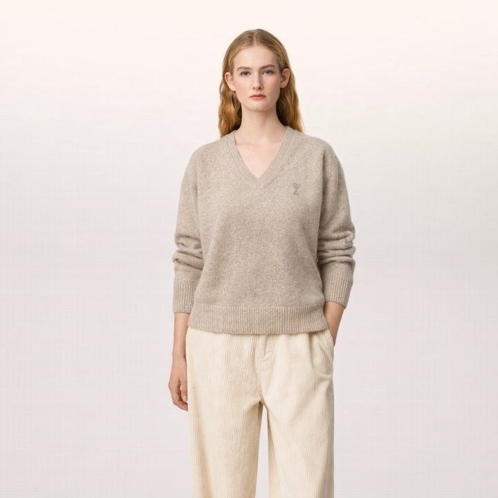 아* 드 꾀흐 까마이외 자수 V넥 울 스웨터 (여성)