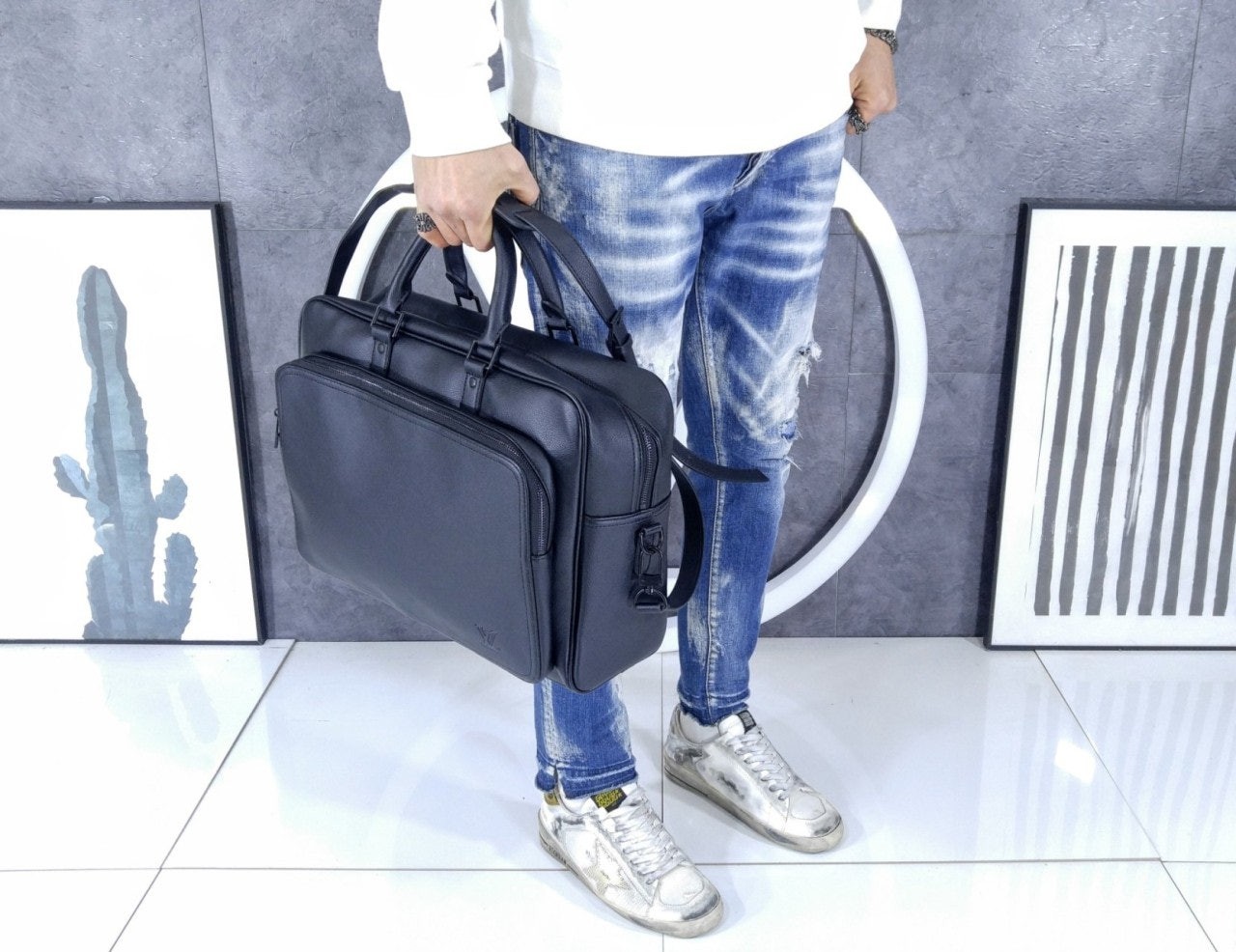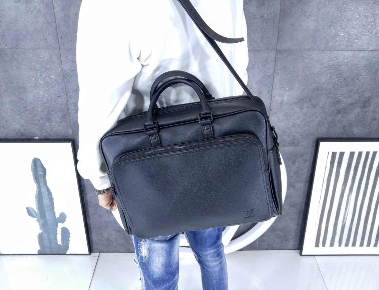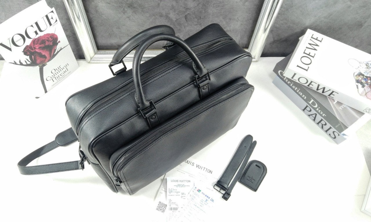 왁싱 처리한 송아지 가죽 소재에 매칭되는 색상의 안감과 하드웨어를 더해 완성한 위켄더 백. 메인 수납공간에 기능적인 매력을 선사하는 넉넉한 지퍼형 앞면 포켓. 다양하게 연출할 수 있는 두 개의 상단 핸들과 탈착 가능한 조절형 숄더 스트랩. 호라이즌 롤링 수트케이스 위에 딱 맞게 올려둘 수 있는 크기. 꾸미지 않은 듯 자연스러운 여행 스타일에 어울리는 아이템.