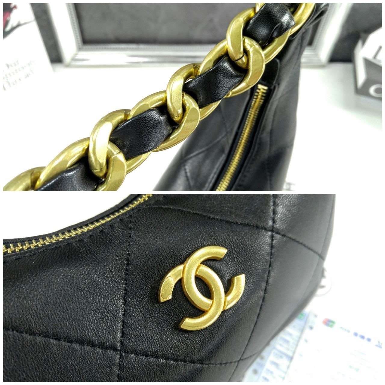 • 샤* 25k 호보백 블랙 골드 메탈