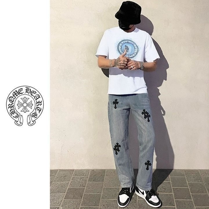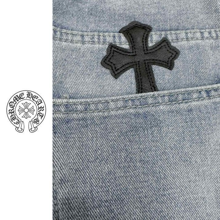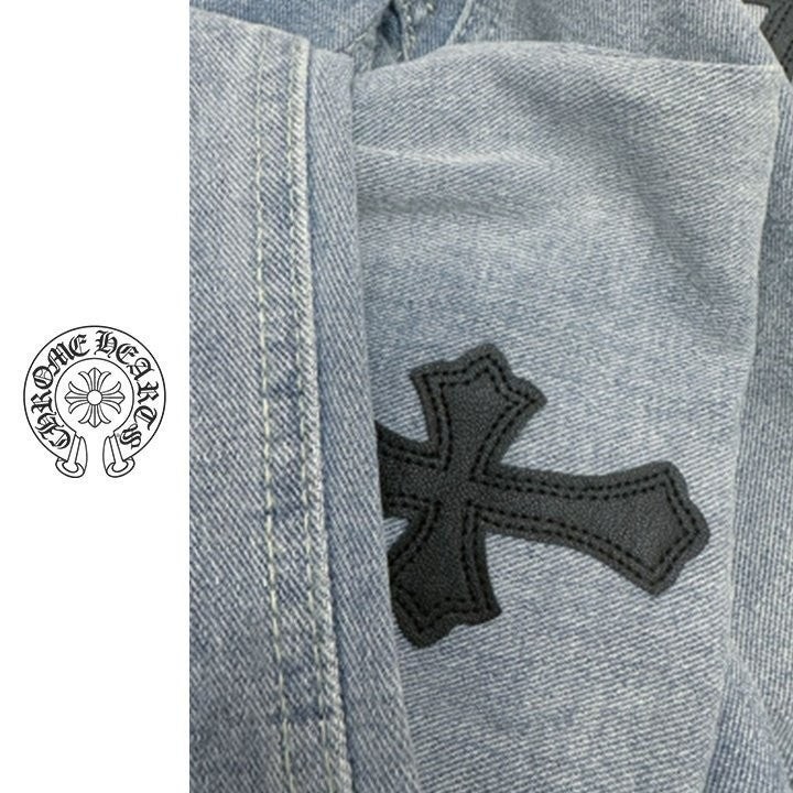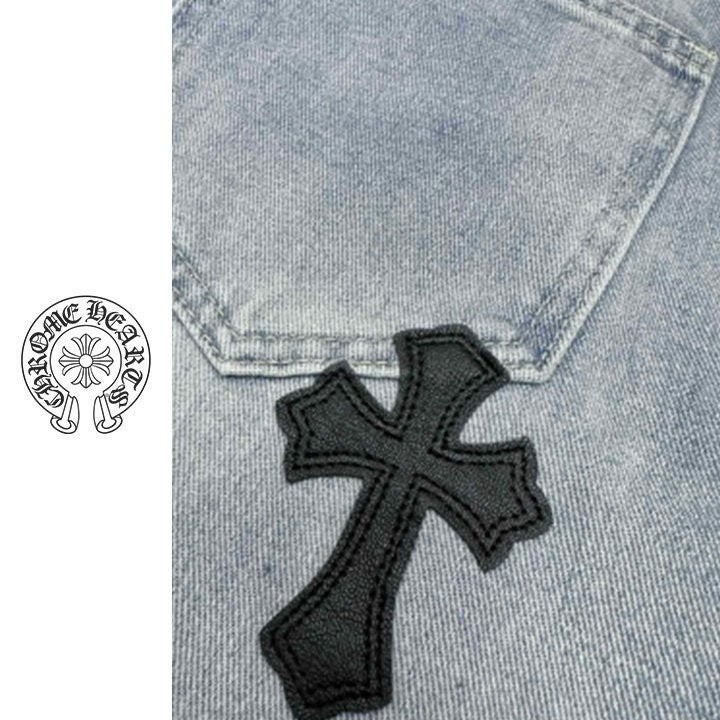 십자가 패치가 포인트인 데님 진 입니다.