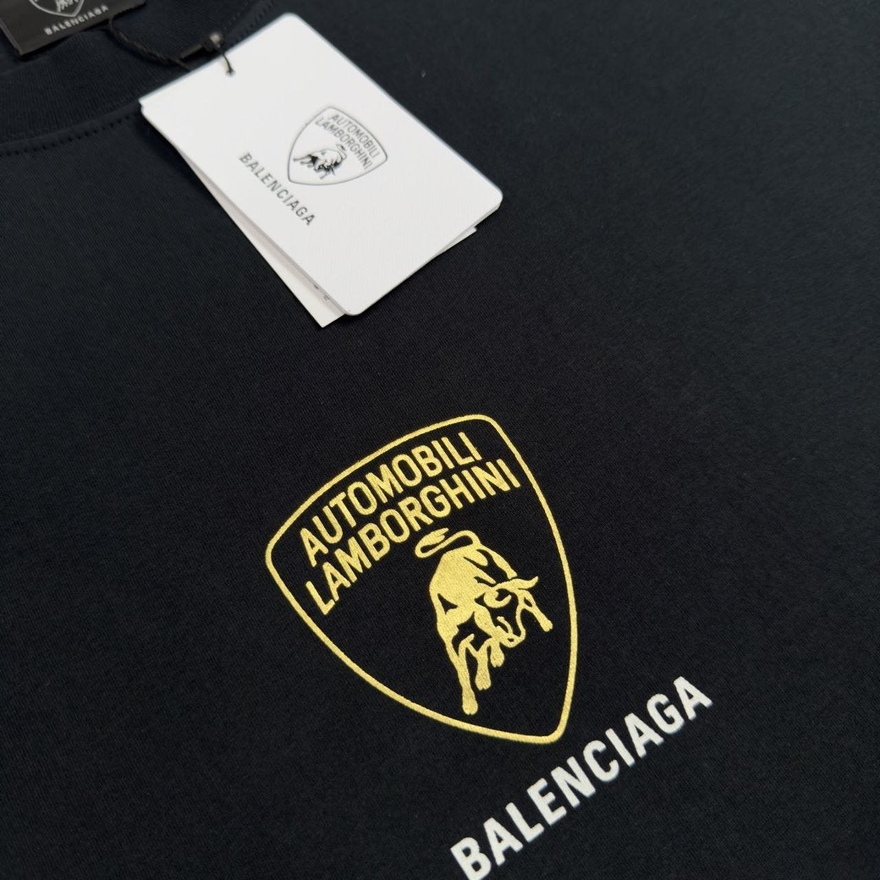 •원단은 맞춤 염색된 활성 블랙 24수 단사 210g으로 제작되어 매우 편안하며, 1x1 십자 리브 280g이 포함됩니다. 실크스크린 금 페이스트 인쇄 공법을 사용하며, 여러 차례 색상 조정을 거칩니다. 특수 주문 세 가지 라벨 (세탁 가능), 람보르기니 택이 포함됩니다.