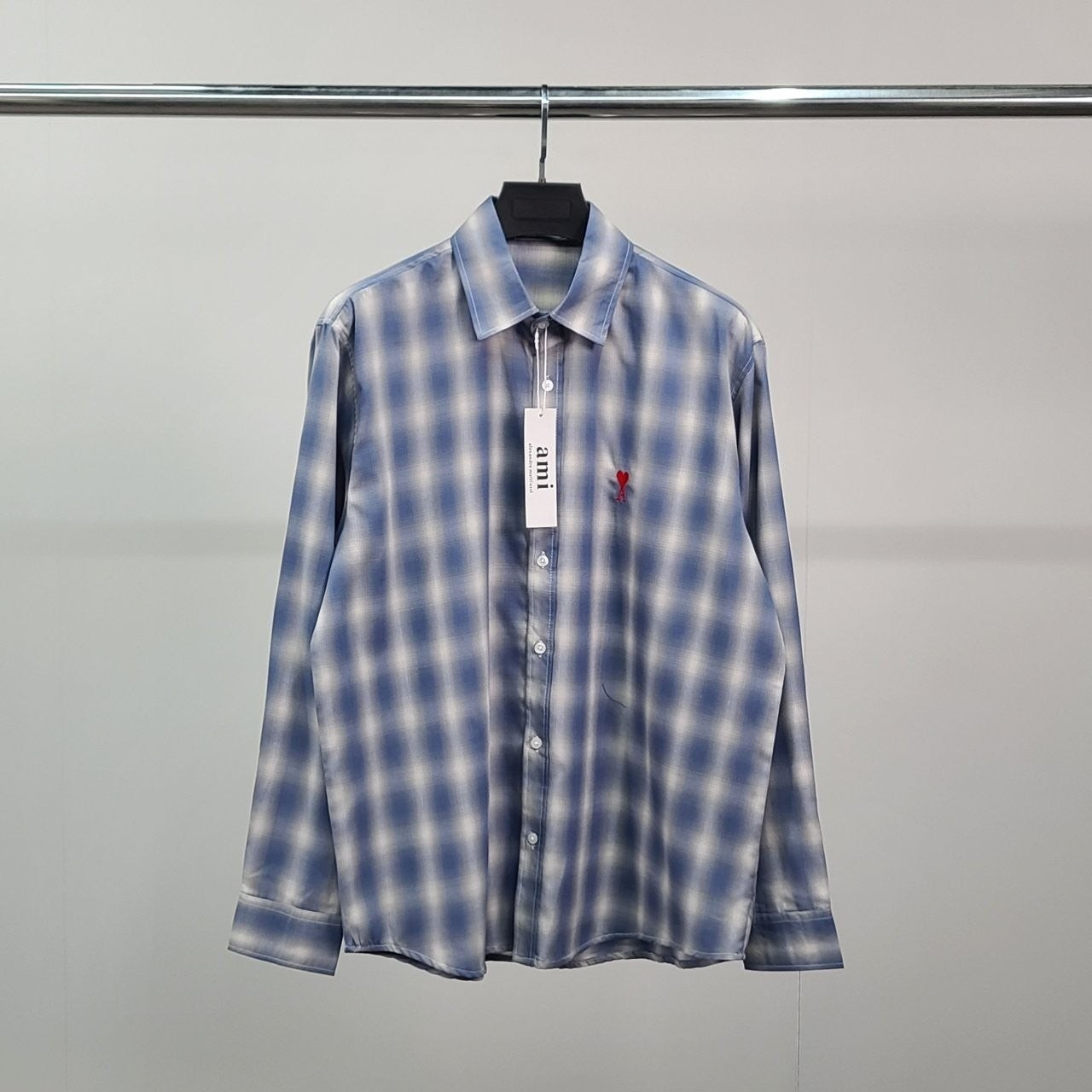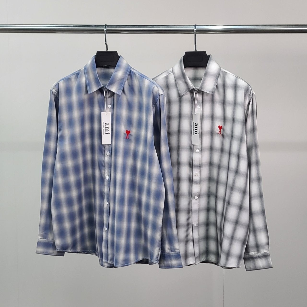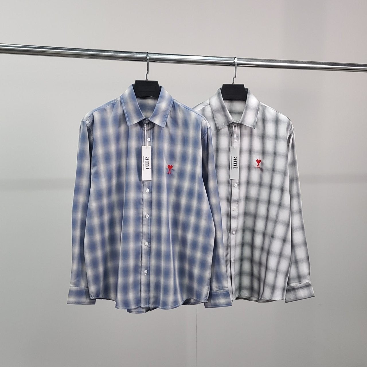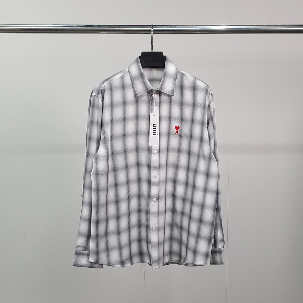 아* 스몰하트자수 오버 체크 셔츠