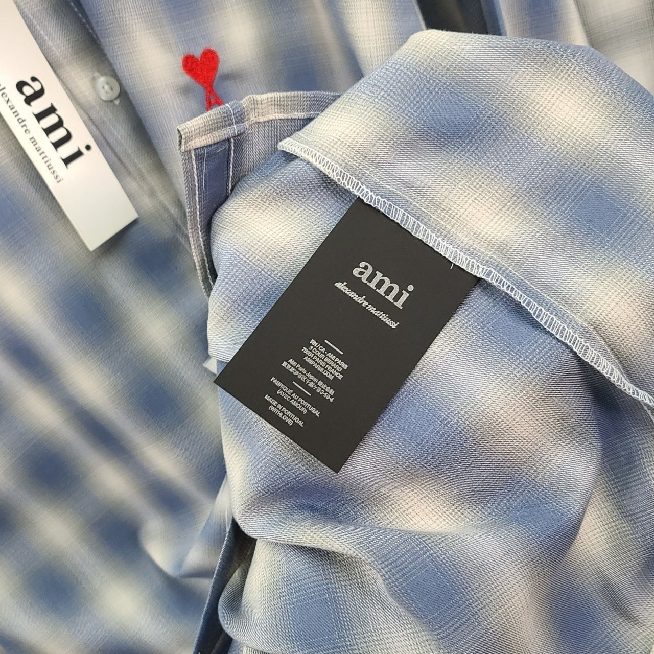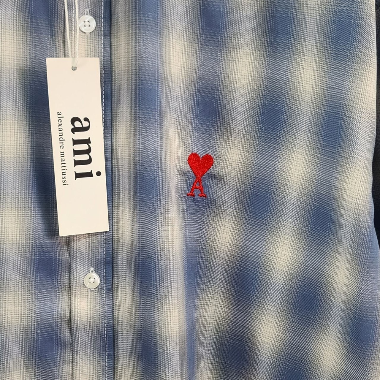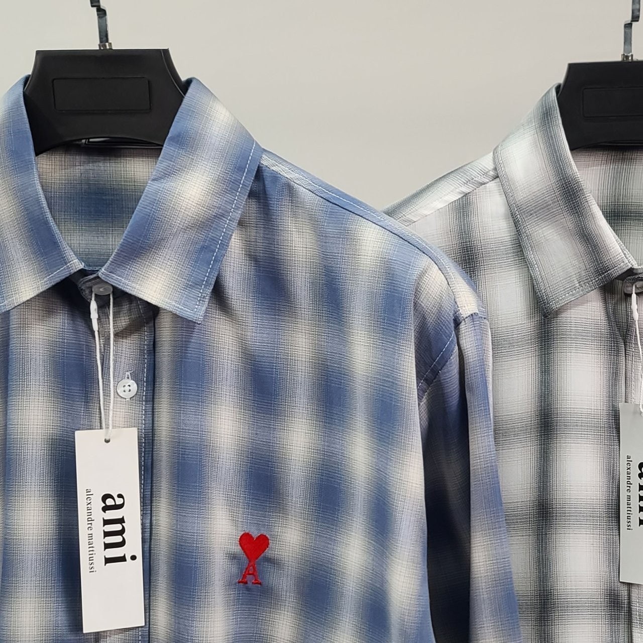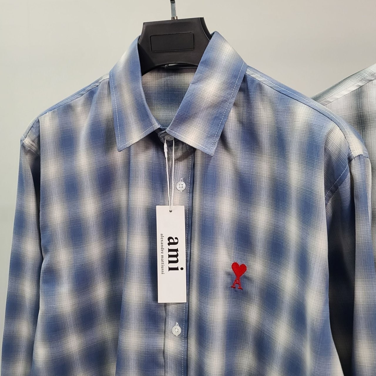아* 스몰하트자수 오버 체크 셔츠