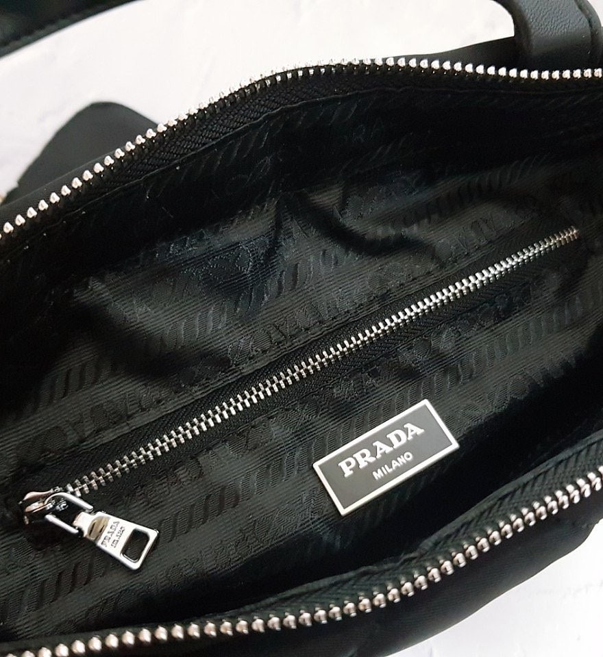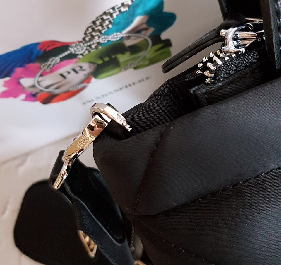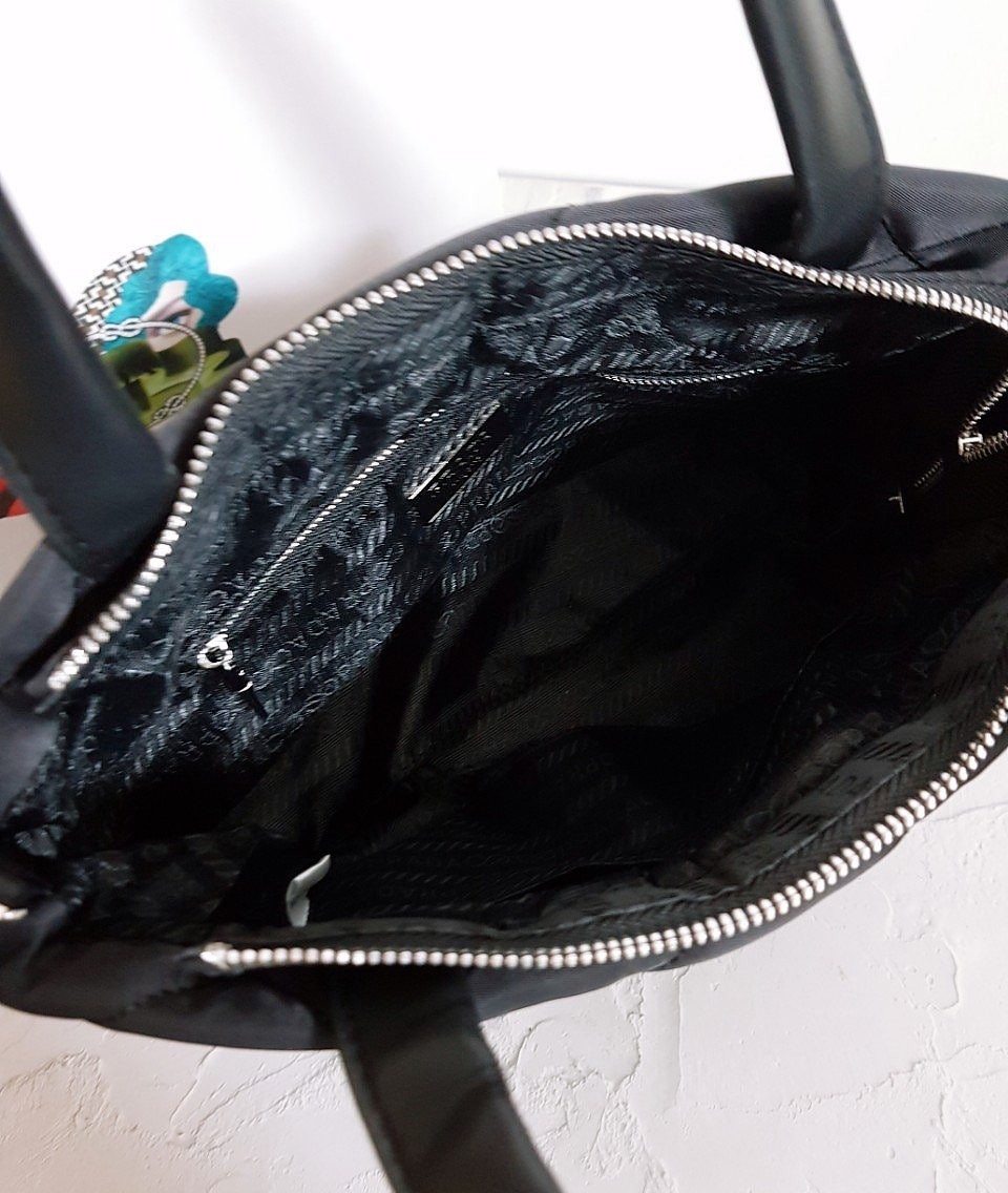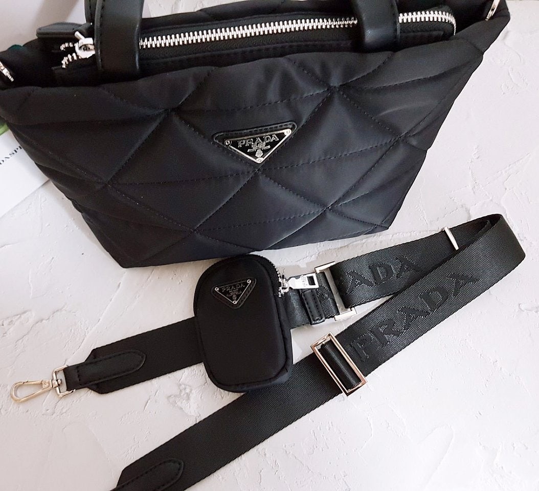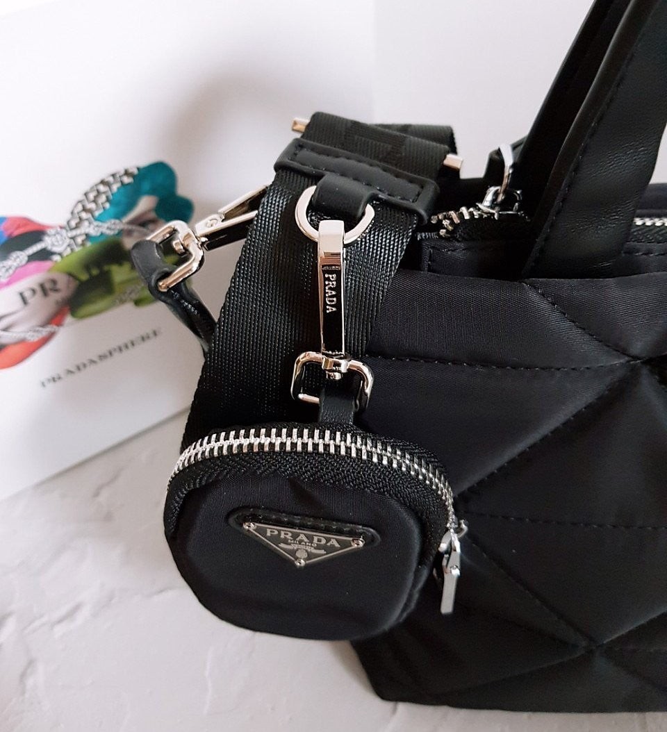 • 프** 고급 리나일론 나파 트라이앵글 퀼팅 패딩 더블핸들 지퍼 포켓 토트 블랙