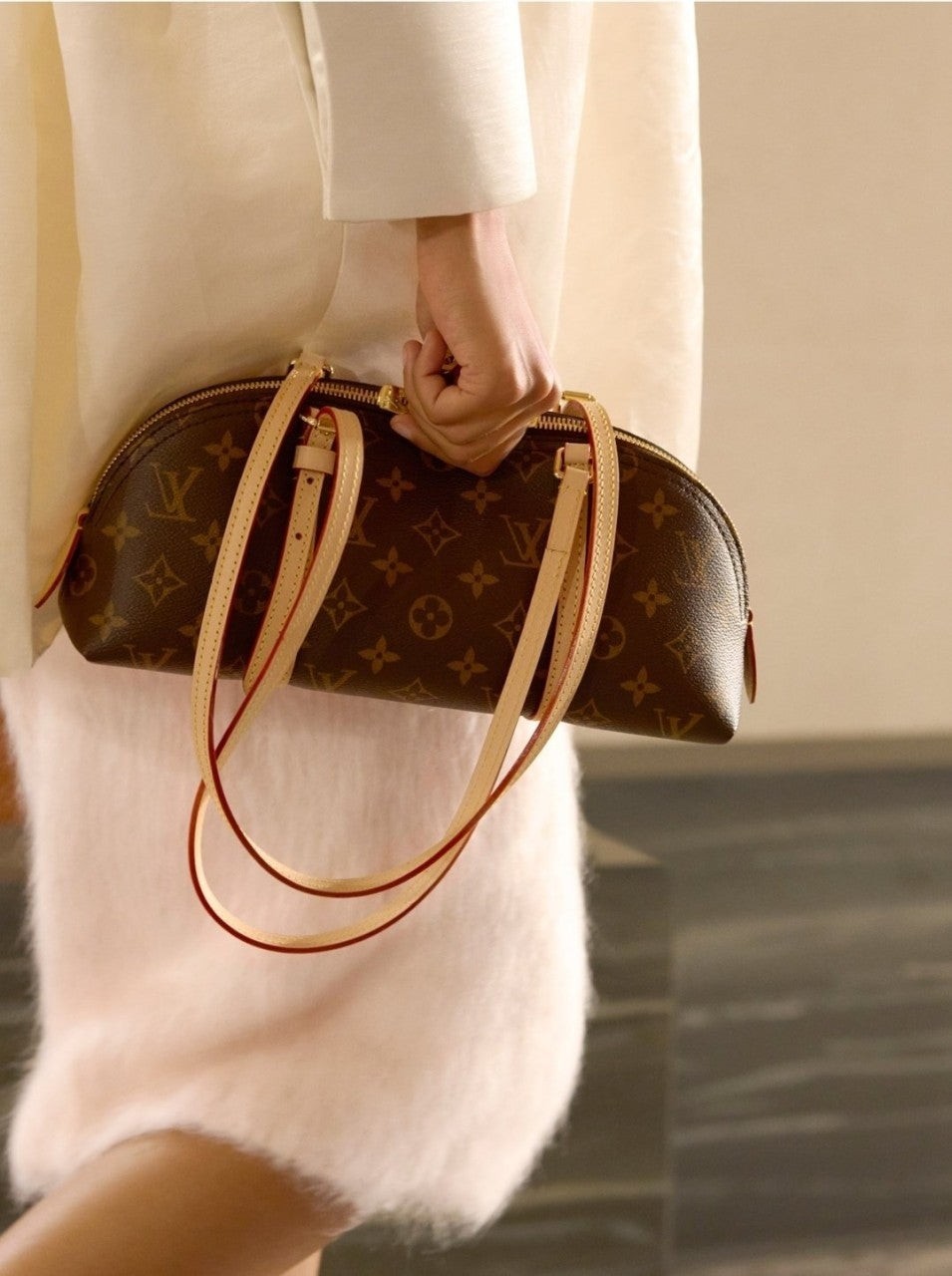 80년대 루*의 핸드백을 현대적인 볼링 백 디자인으로 재해석. 캔버스 소재. 빈티지한 감성을 자아내며 지퍼 잠금장치와 완벽한 길이로 조절할 수 있는 스트랩을 구성하여 다양하게 스타일링할 수 있는 아이템.
