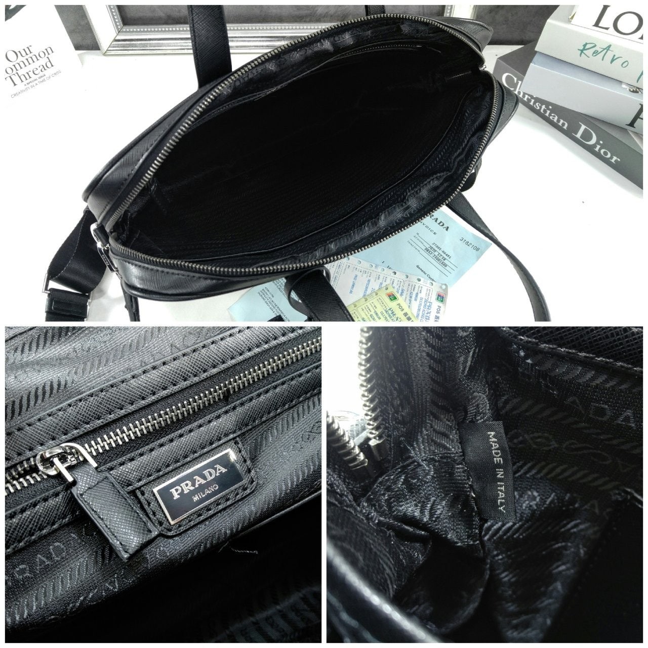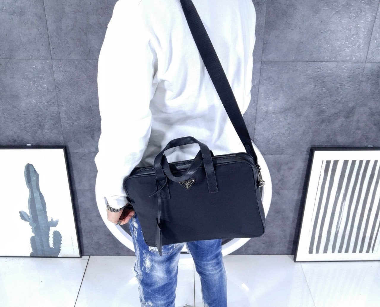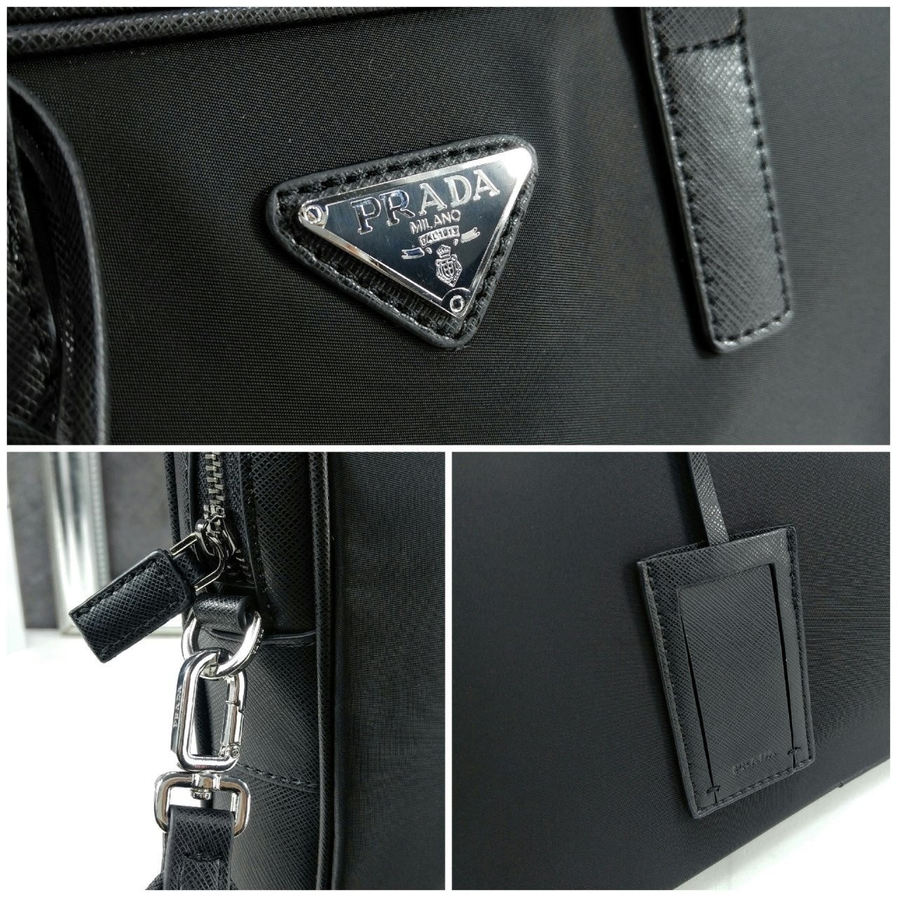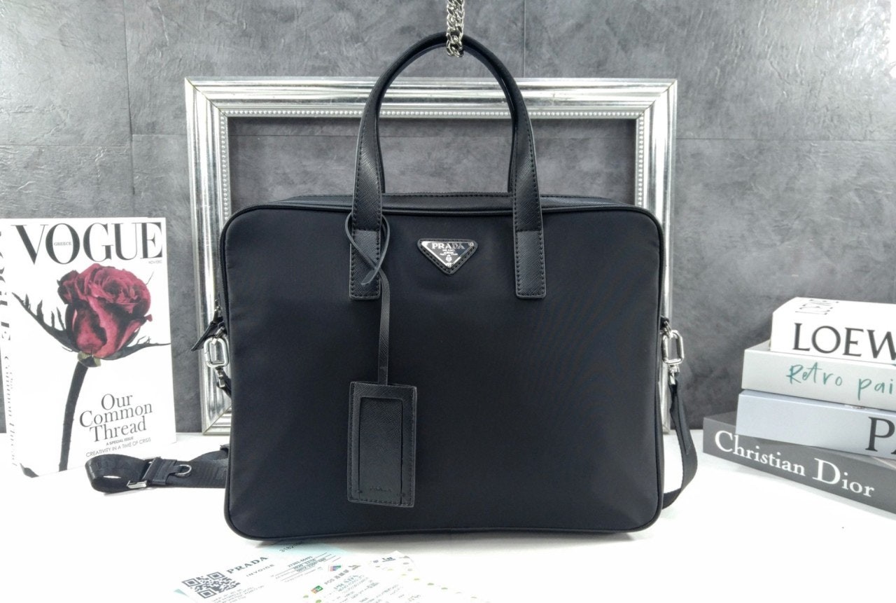 프**의 아이코닉한 소재인 리나일론과 사피아노 가죽 디테일을 혼합하여 우아하고 활용성이 좋은 디자인으로 완성한 브리프케이스입니다. 실용적인 지퍼 클로저와 탈부착형 숄더 스트랩이 특징인 넉넉한 크기의 액세서리로, 에나멜 메탈 트라이앵글 로고로 장식했습니다.