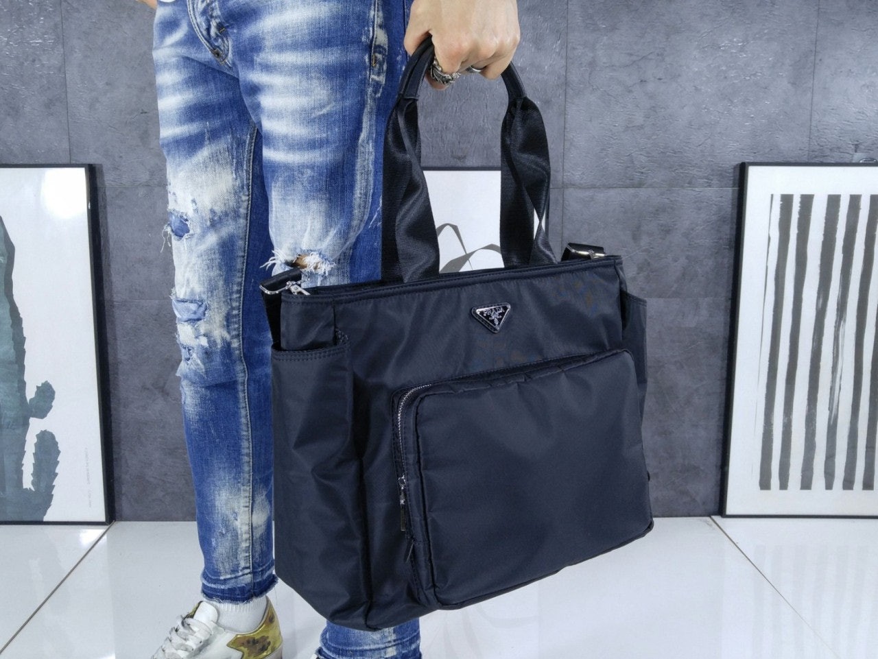 측면에 오픈 포켓, 후면 지퍼 포켓