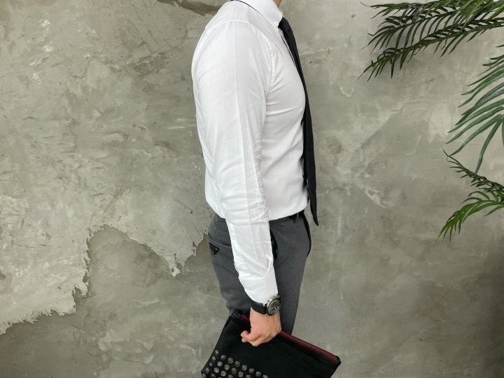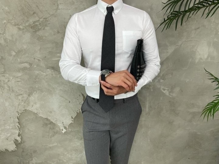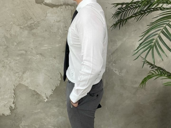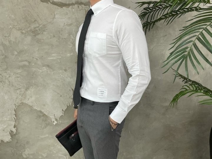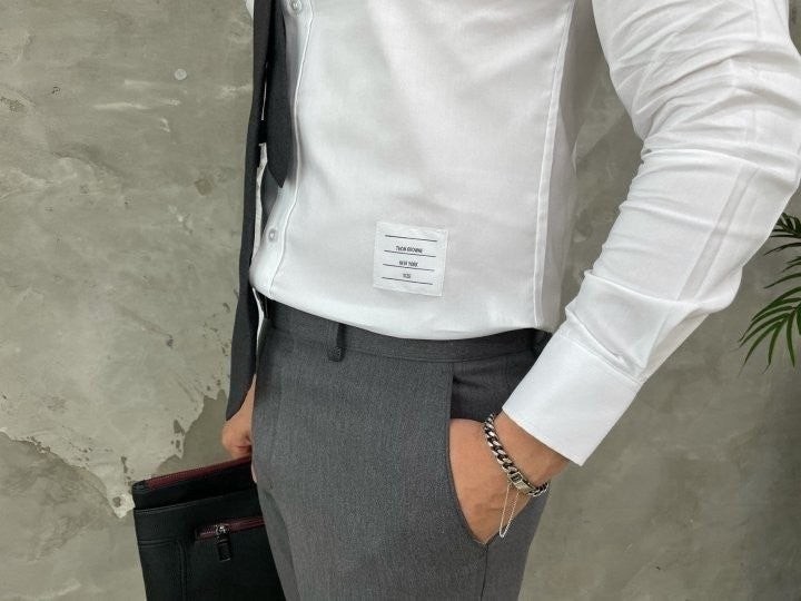 톰*사 만의 트레이드마크 삼선을 단추라인에 넣어 고급스러운 느낌을 연출합니다.