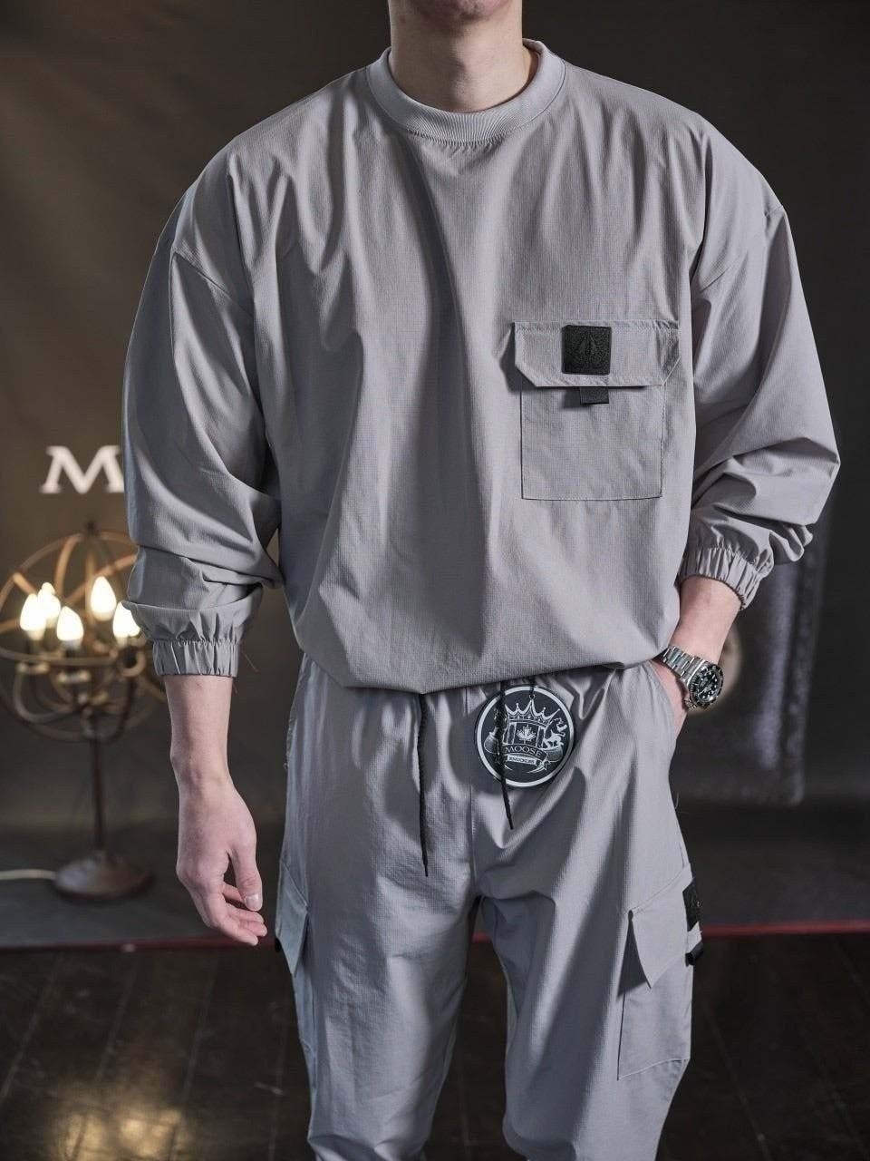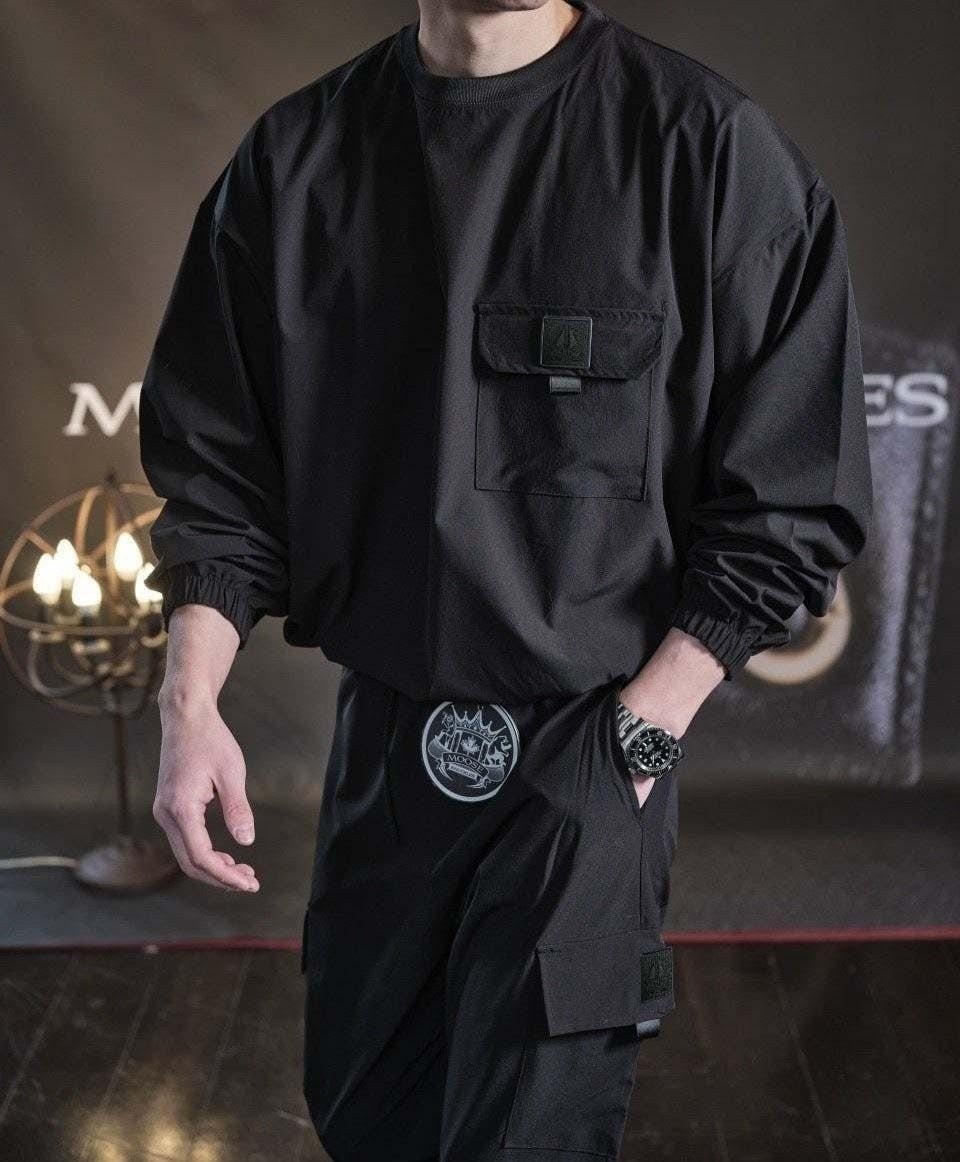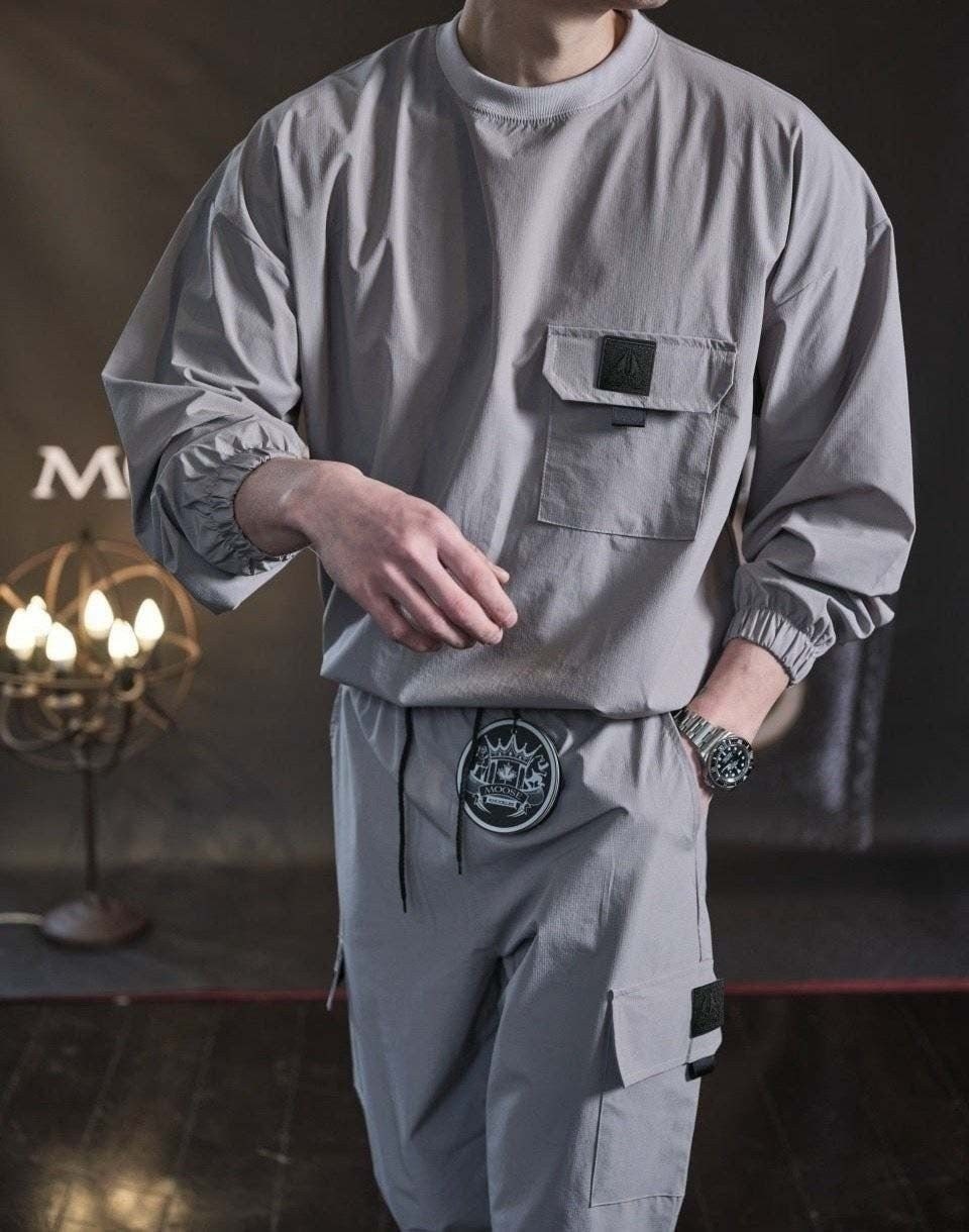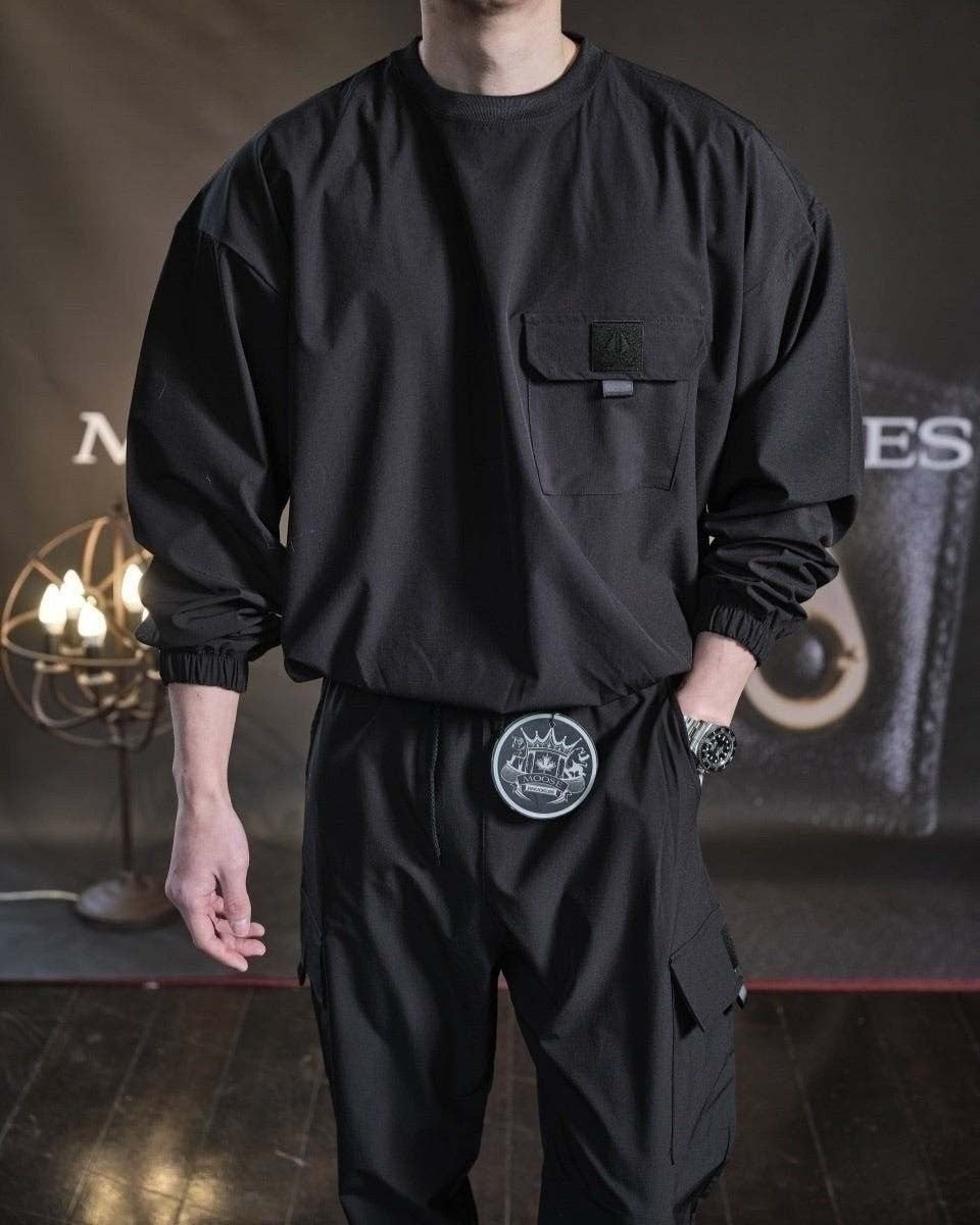 링클프리 바람막이 소재를 사용한 맨투맨&조거팬츠 셋업 제품입니다.