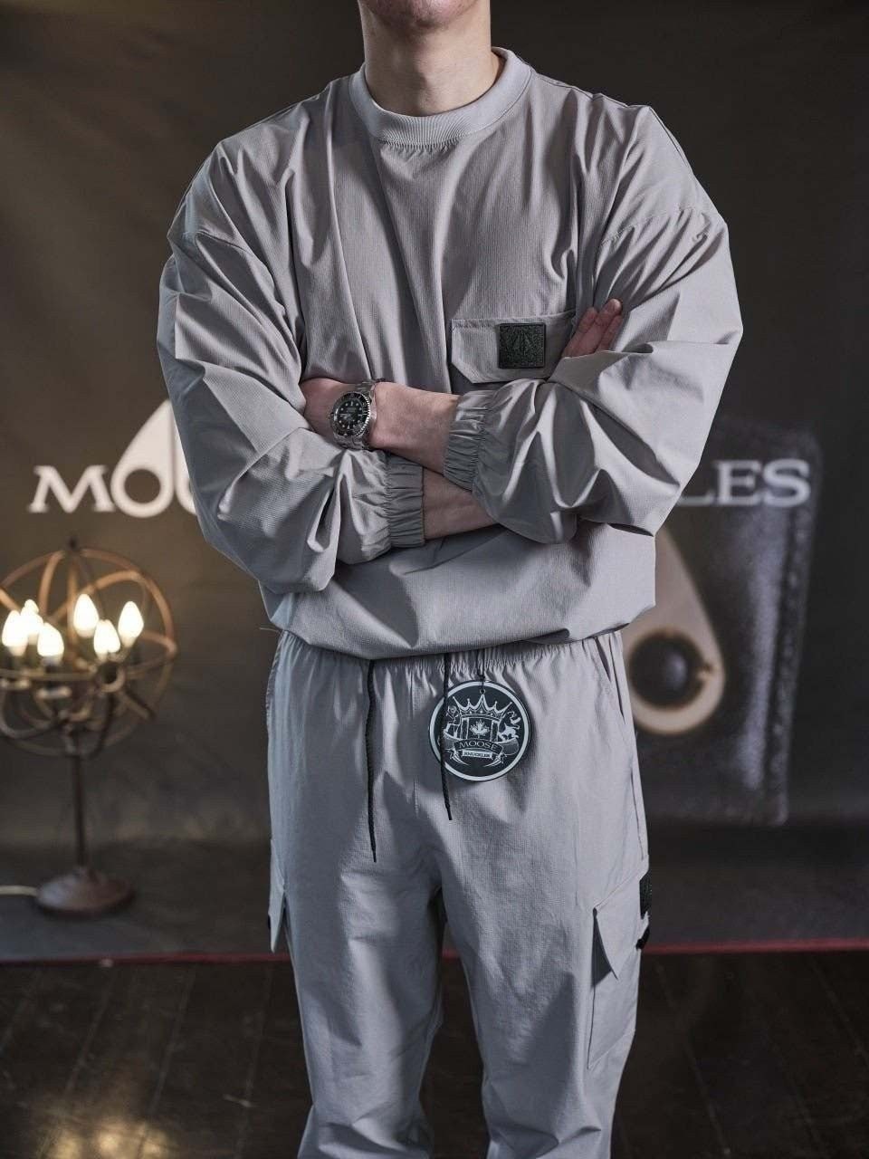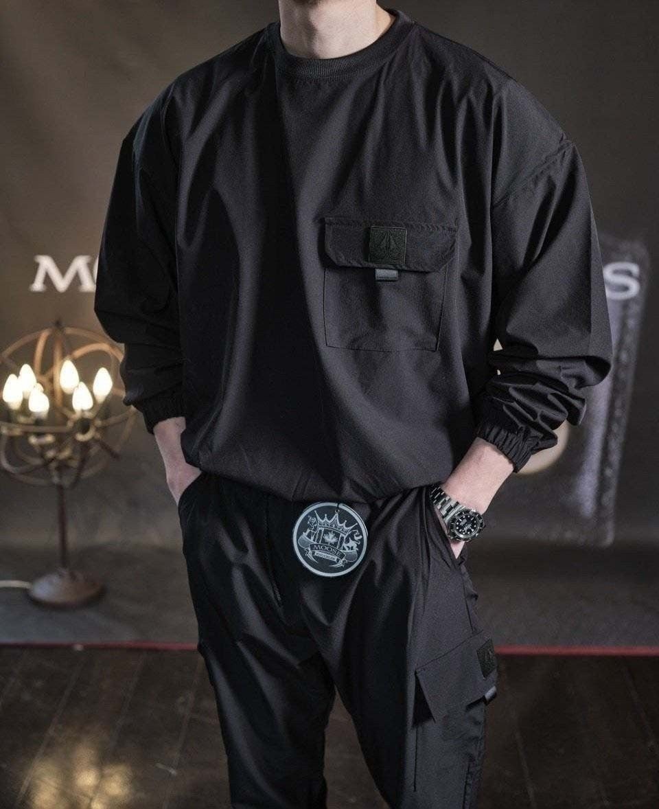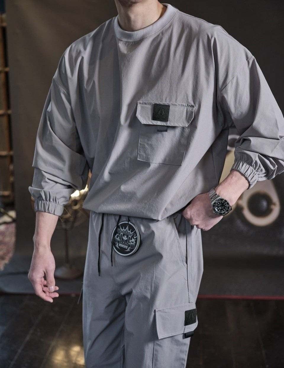 링클프리 바람막이 소재를 사용한 맨투맨&조거팬츠 셋업 제품입니다.
