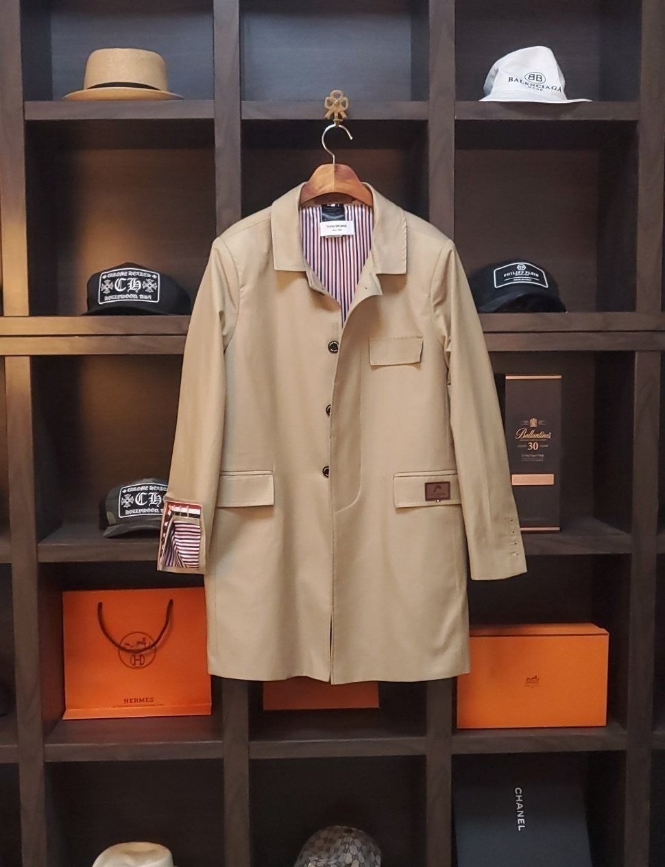 톰* 클래식 라인 삼선웨일 뒤 삼선트렌치코트