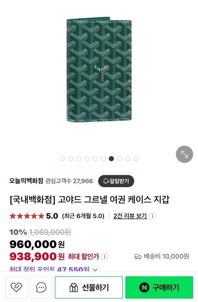 고** 그르넬 여권지갑 (그린)