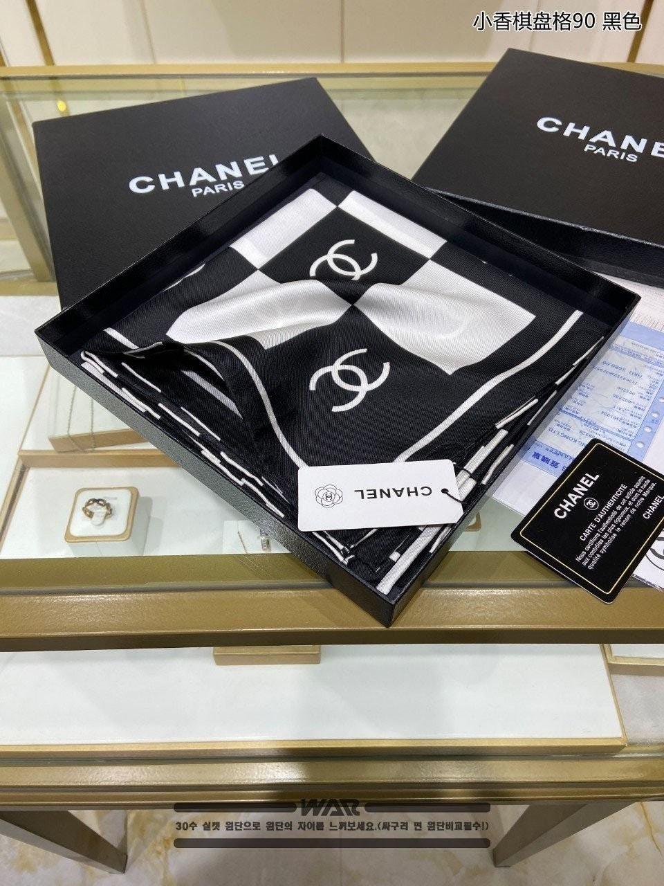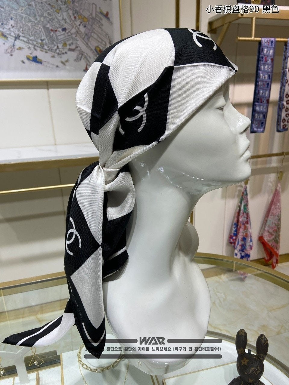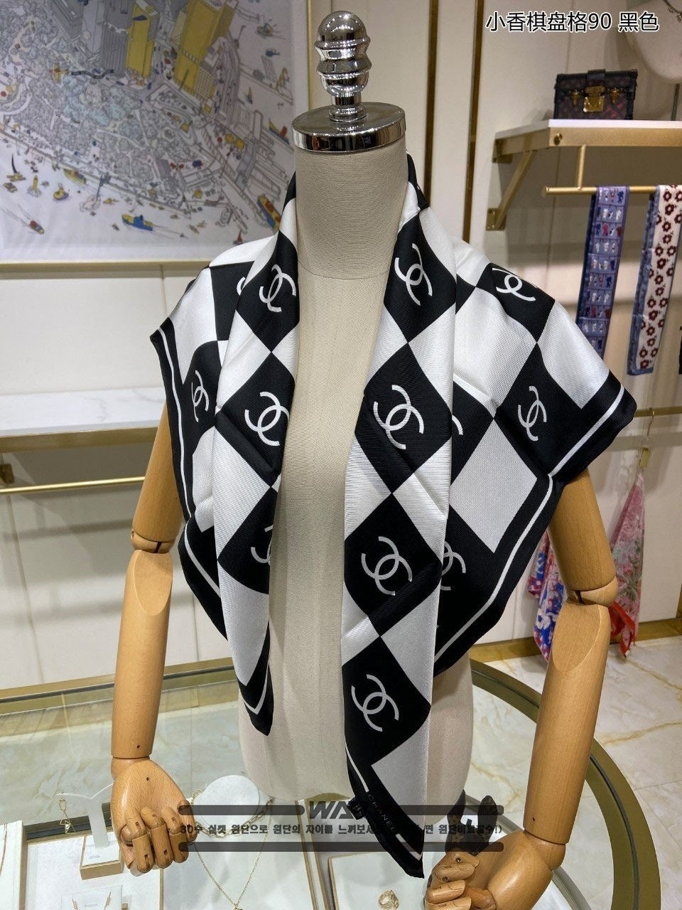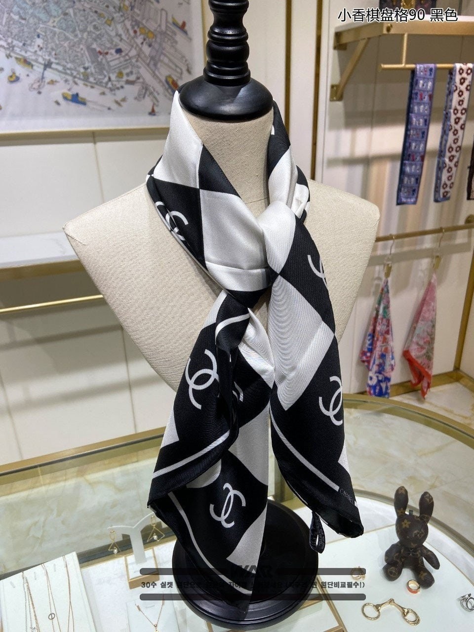 샤* 사각 레터링 로고 블랙 사각 스카프