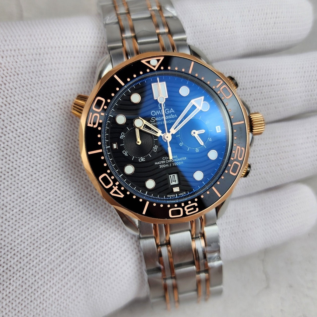 이번에 소개해드릴 시계는오** 코액시얼 씨마스터 다이버300M 블랙다이얼 로즈골드콤비 입니다.