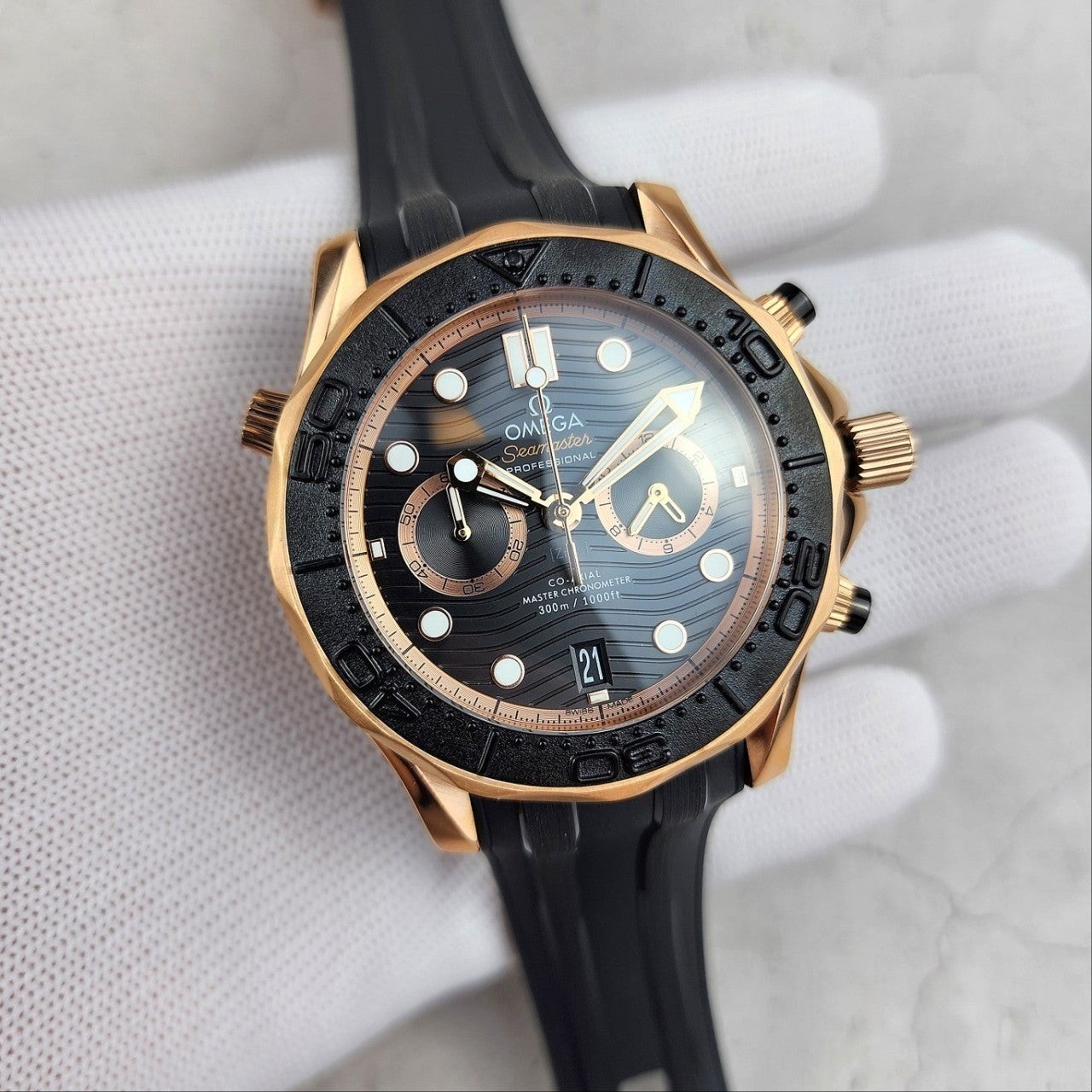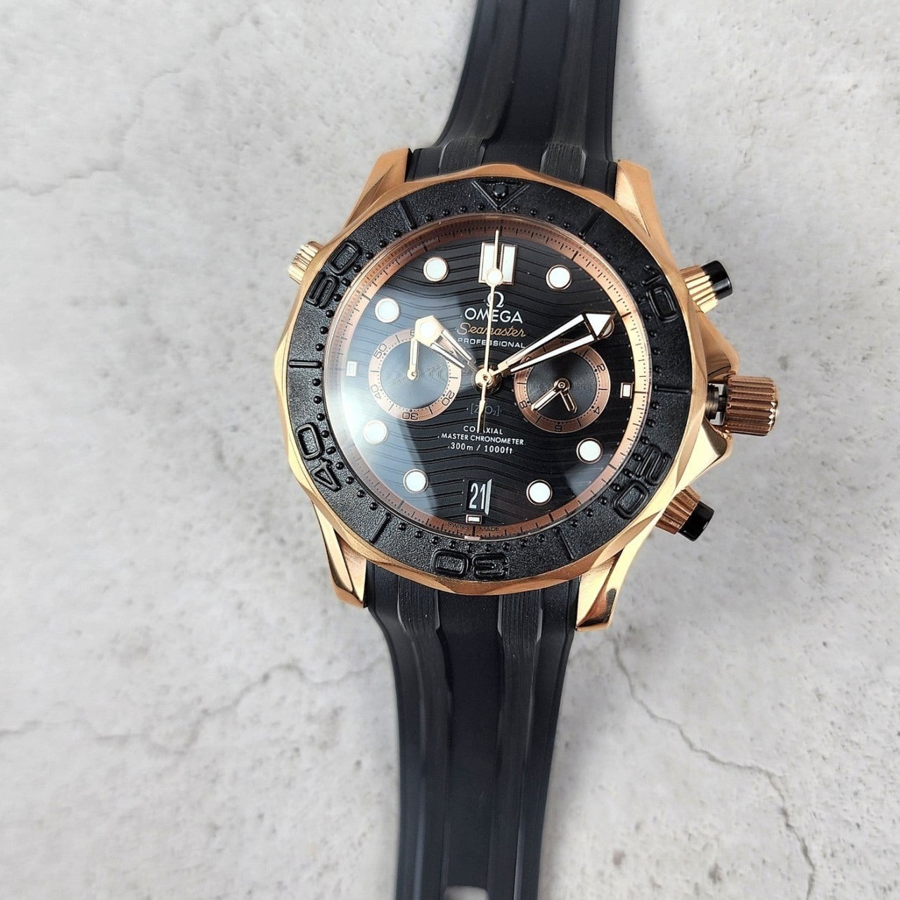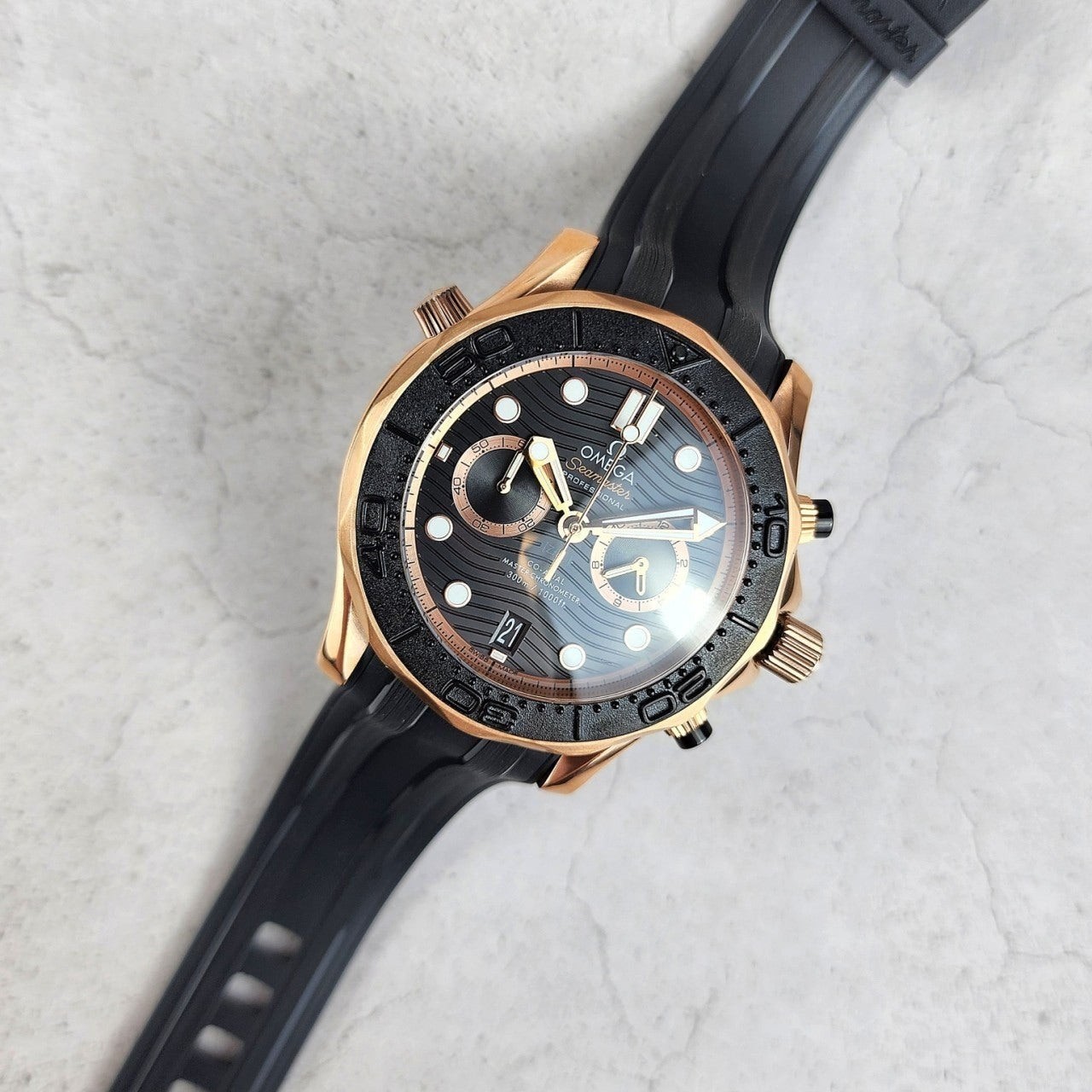 이번에 소개해드릴 시계는 오** 코액시얼 씨마스터 다이버300M 블랙다이얼 로즈골드 입니다.