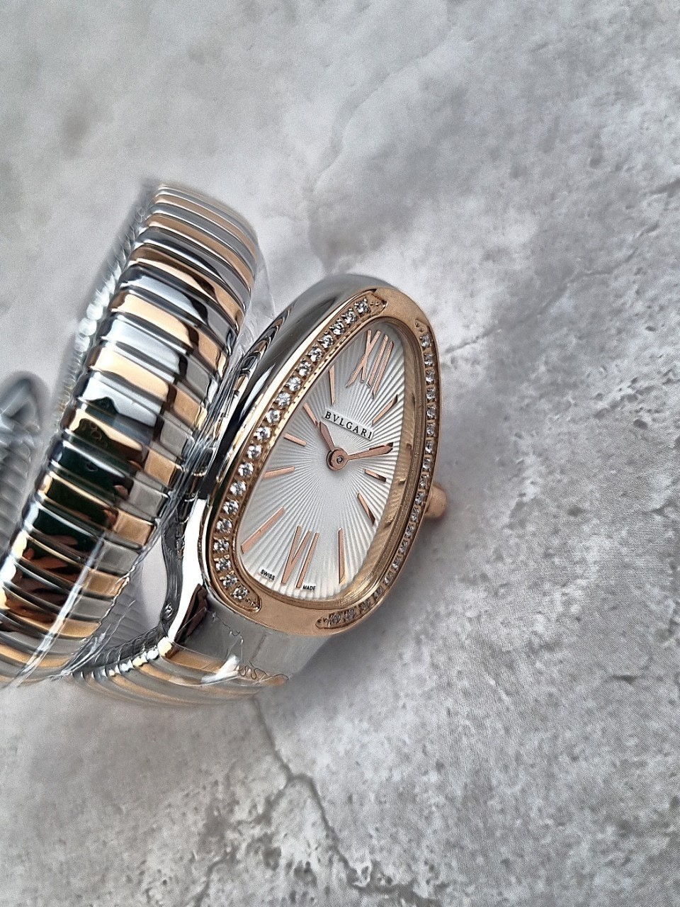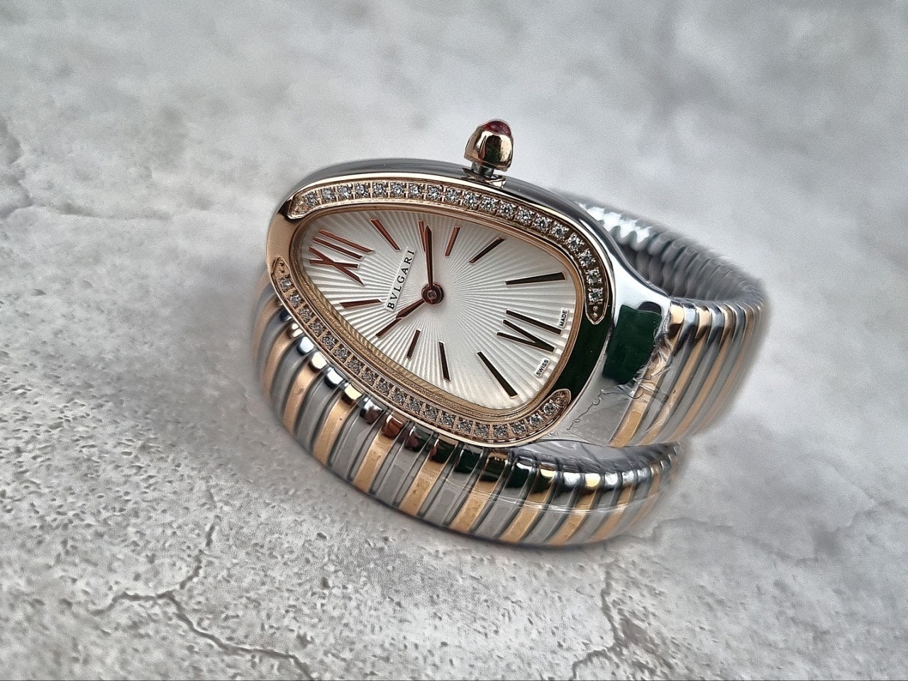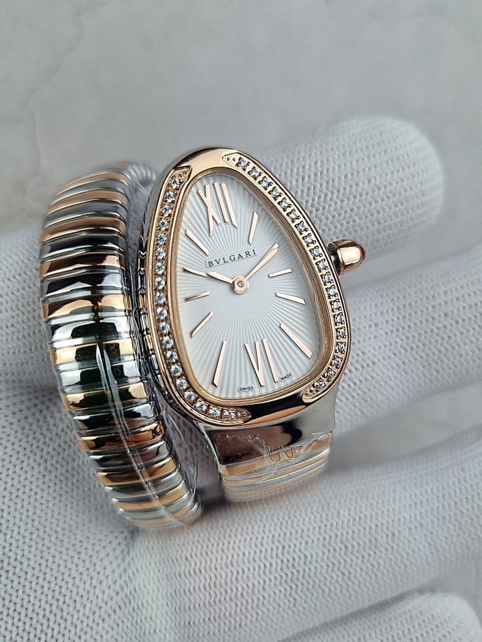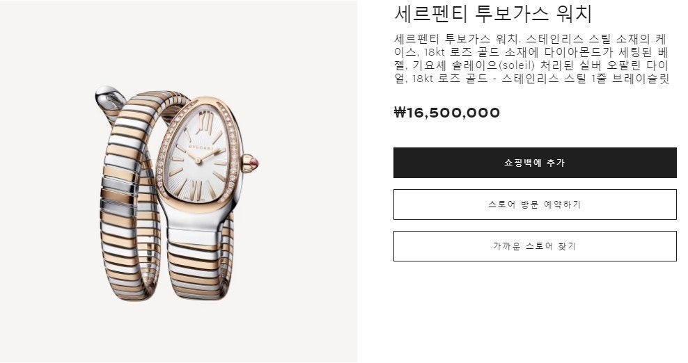 이번에 소개해드릴 시계는 불** 세르펜티 투보가스 로즈골드 콤비 다이아 모델입니다.