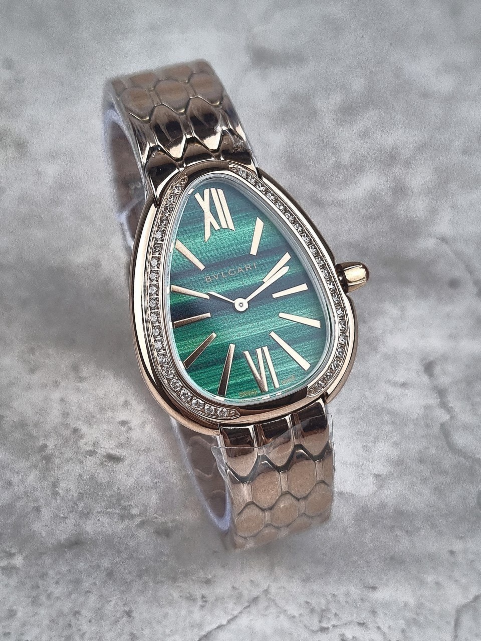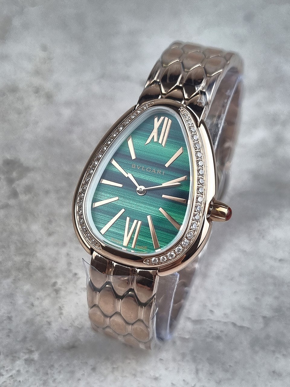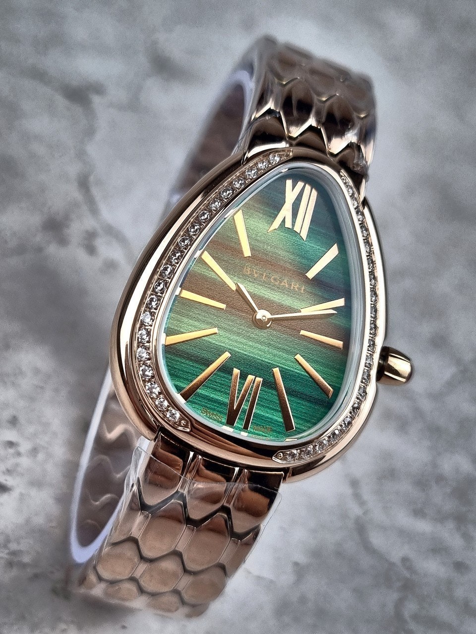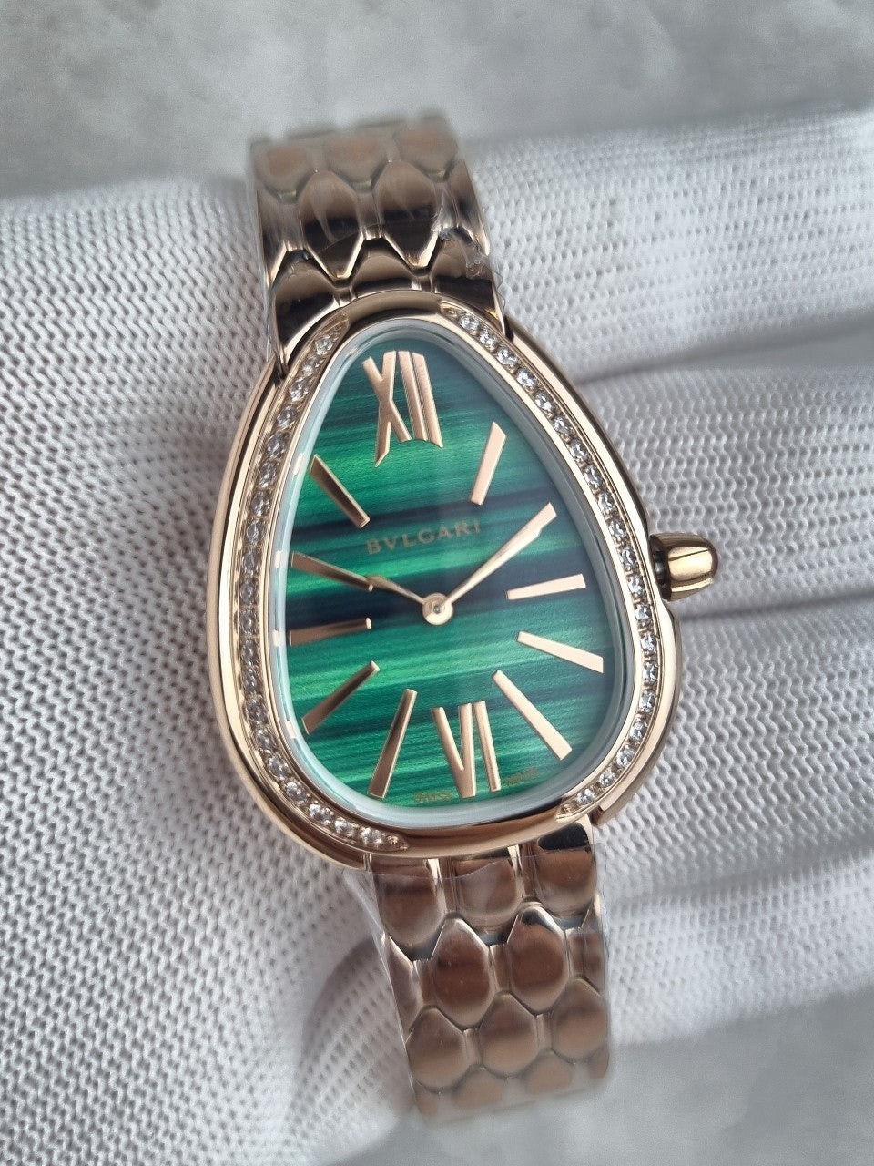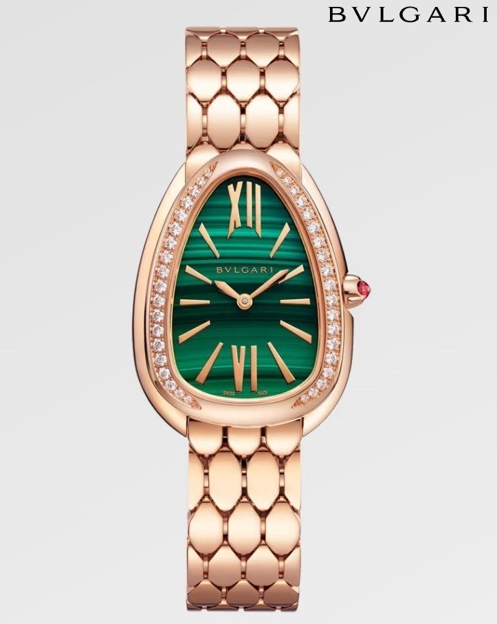 이번에 소개해드릴 시계는 불** 세르펜티 세두토리 워치 로즈골드 그린다이얼 다이아 모델입니다.