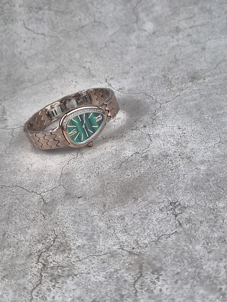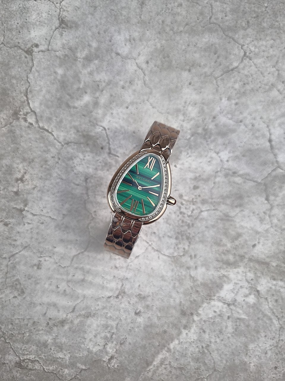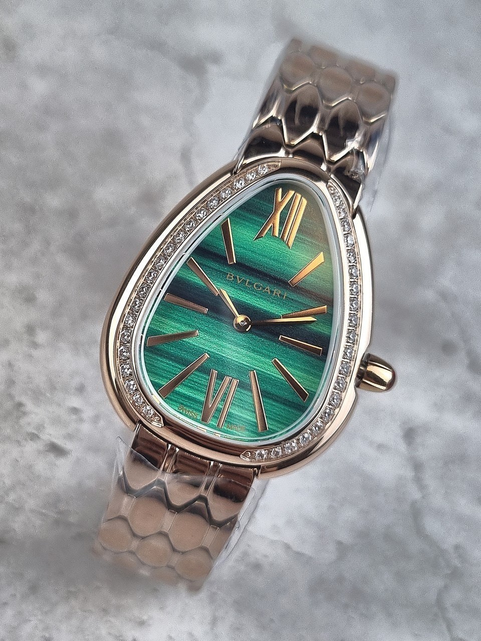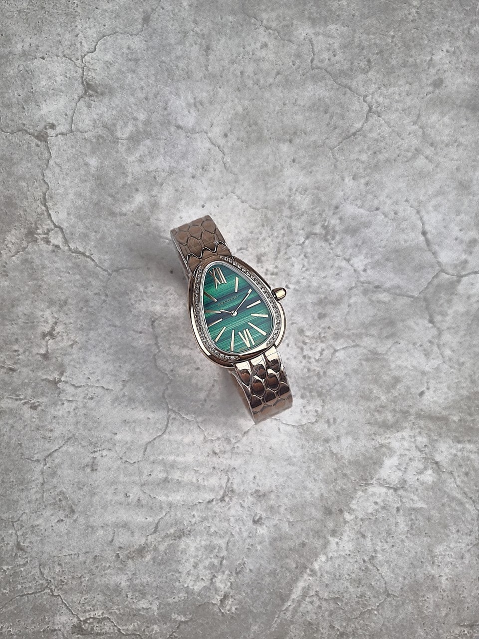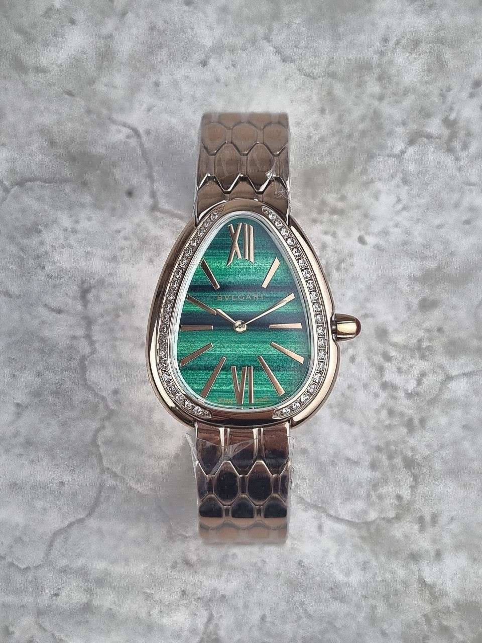 이번에 소개해드릴 시계는 불** 세르펜티 세두토리 워치 로즈골드 그린다이얼 다이아 모델입니다.