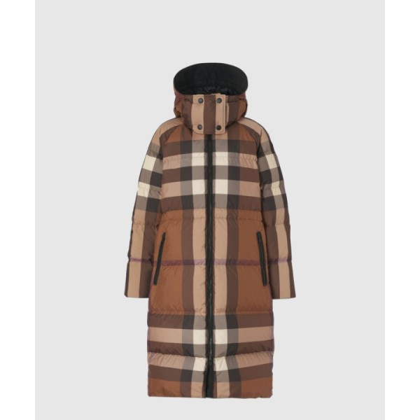 체크 후드 롱 재킷