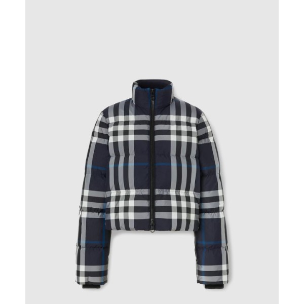 크롭 체크 퍼퍼 재킷