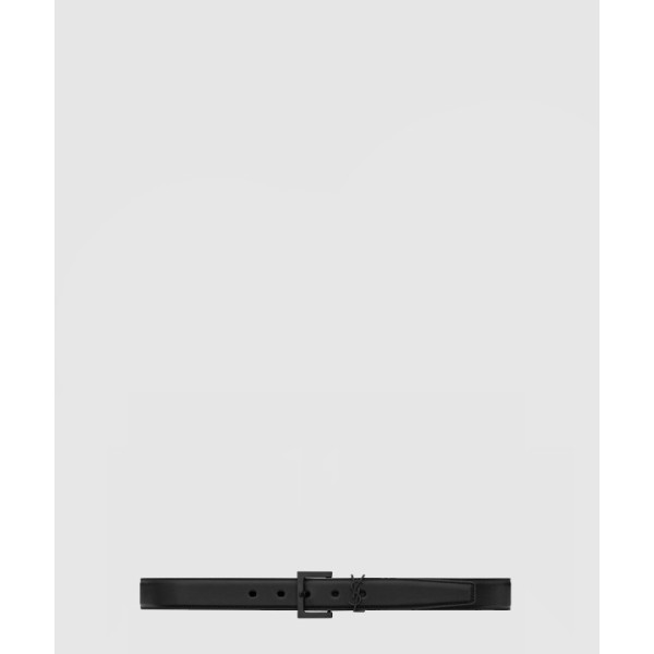 스퀘어 버클을 장식한 유광 박스 생 로랑 가죽 소재의 벨트 634437
